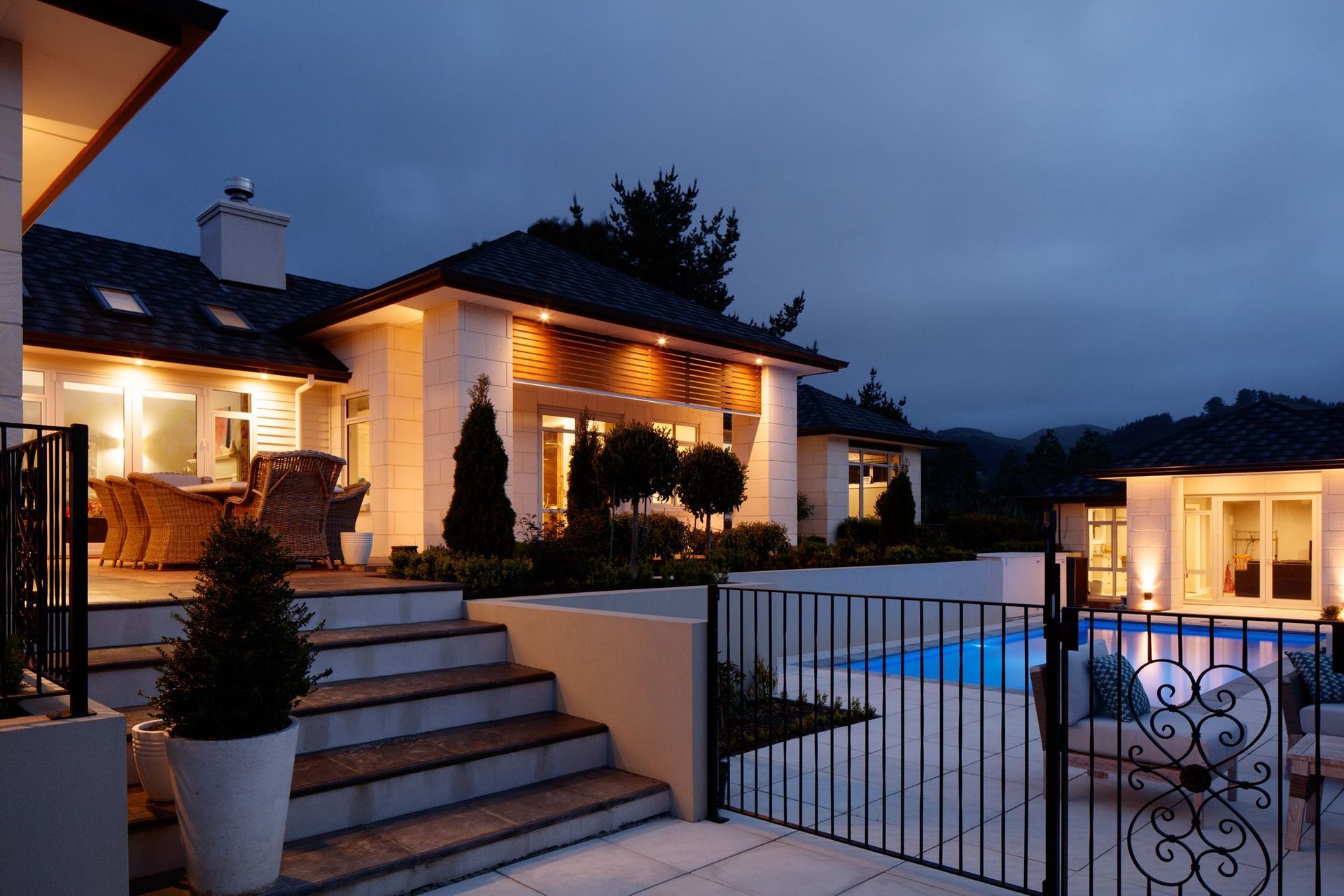 ArchiPro Project Summary - A thoughtfully designed family home in Judgeford, Porirua, featuring a pavilion-style layout, integrated courtyards, and a harmonious blend of natural materials, set within a stunning 4.5-acre landscape.