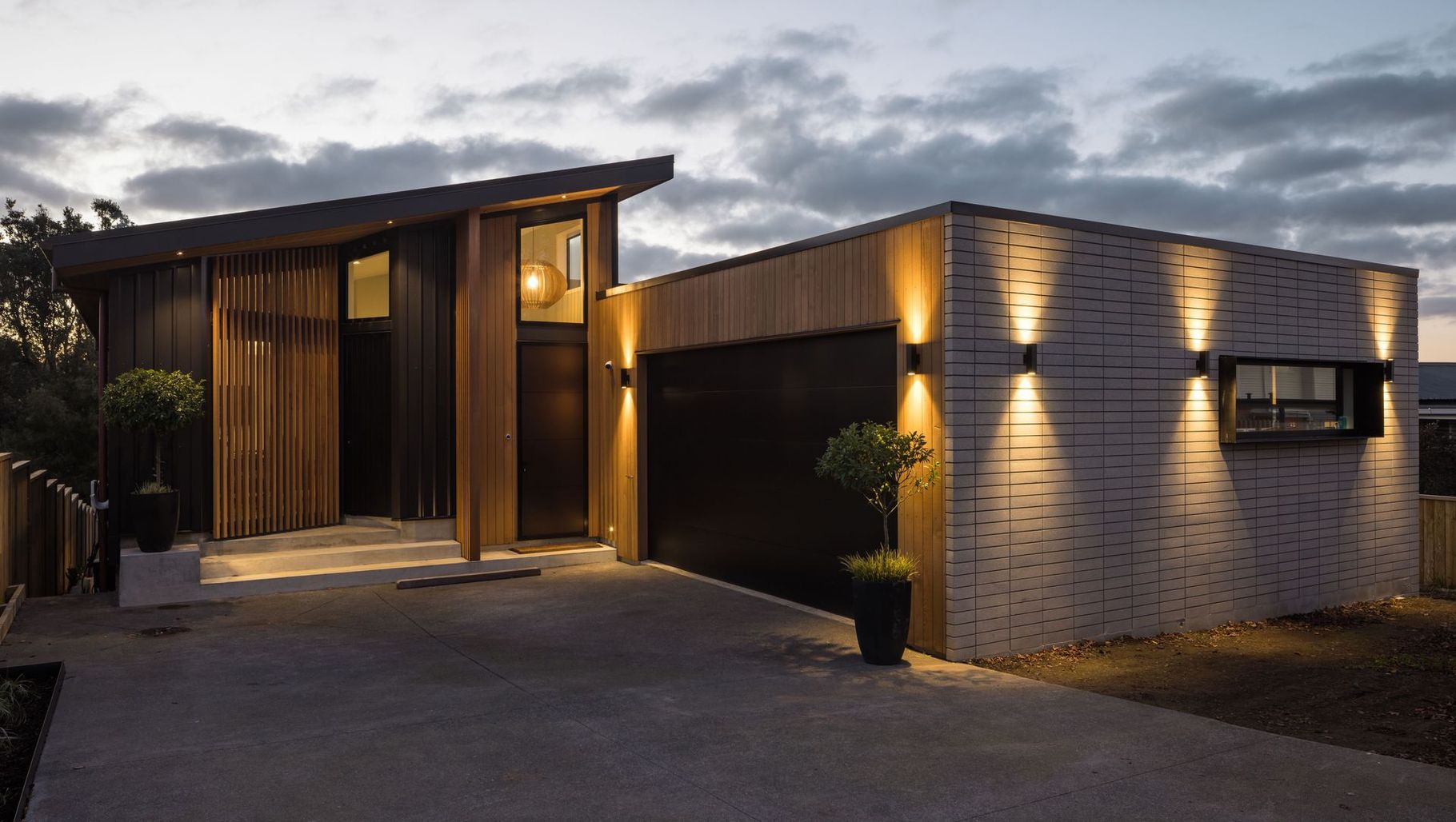 ArchiPro Project Summary - A modern home in Point Chevalier, completed in 2025, featuring bold architectural forms, a blend of textures, and a thoughtfully designed layout that emphasizes privacy, flow, and connection to outdoor spaces.