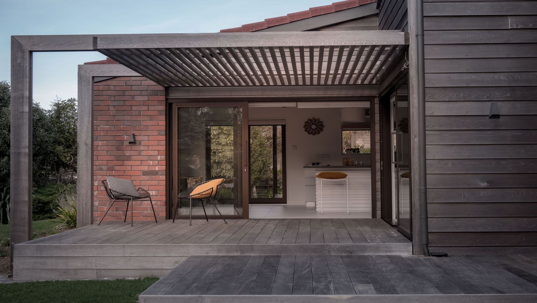 ArchiPro Project Summary - A thoughtful renovation of a classic 80's brick and tile family home, enhancing connectivity with a seamless indoor-outdoor living experience and a delicate interplay of light through timber screens.