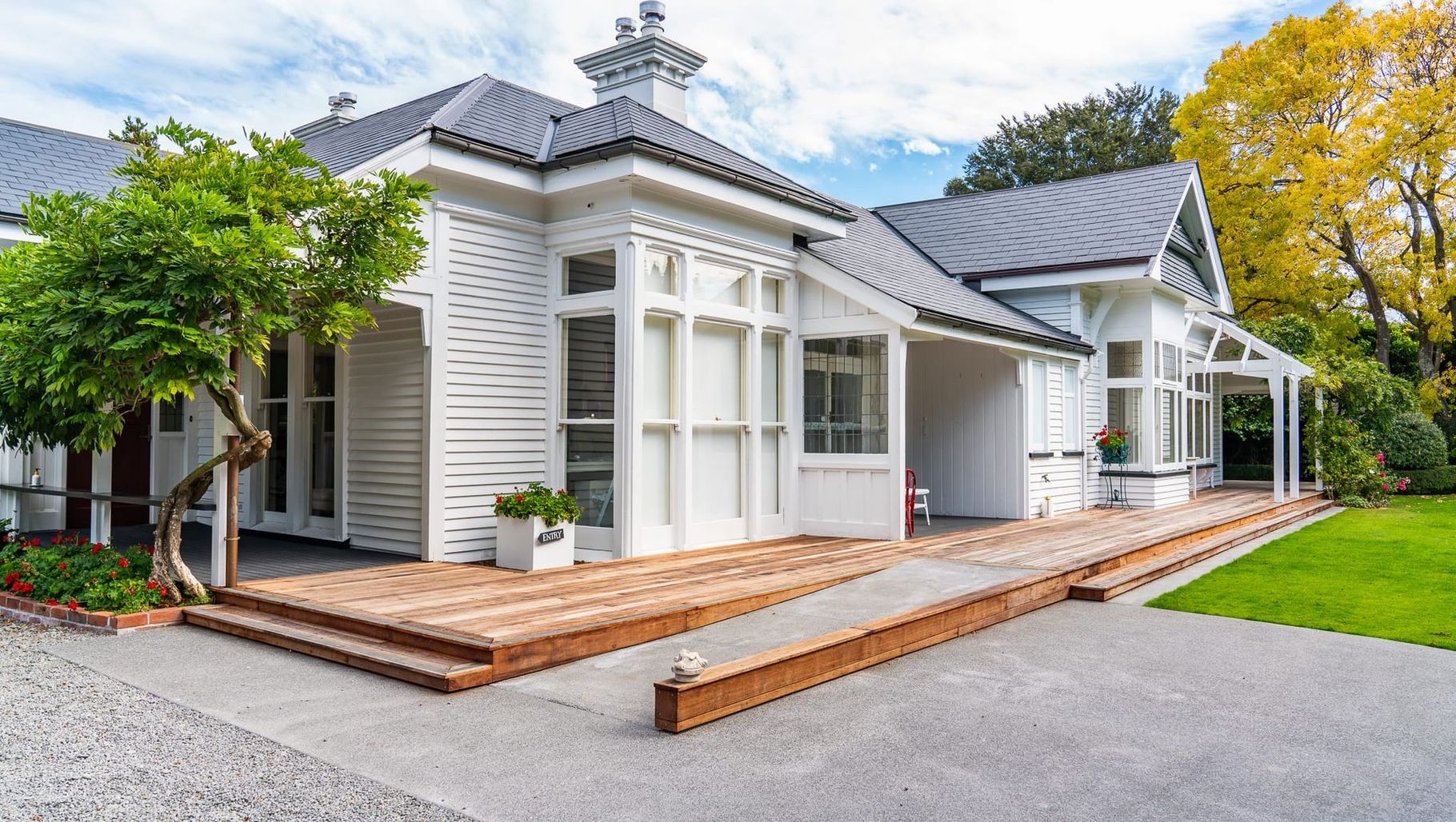 ArchiPro Project Summary - Heritage-listed renovation of Kate Sheppard House featuring new decks, patios, and an interior refurbishment, preserving the original structure while enhancing public accessibility, officially opened by Jacinda Ardern in late 2020.