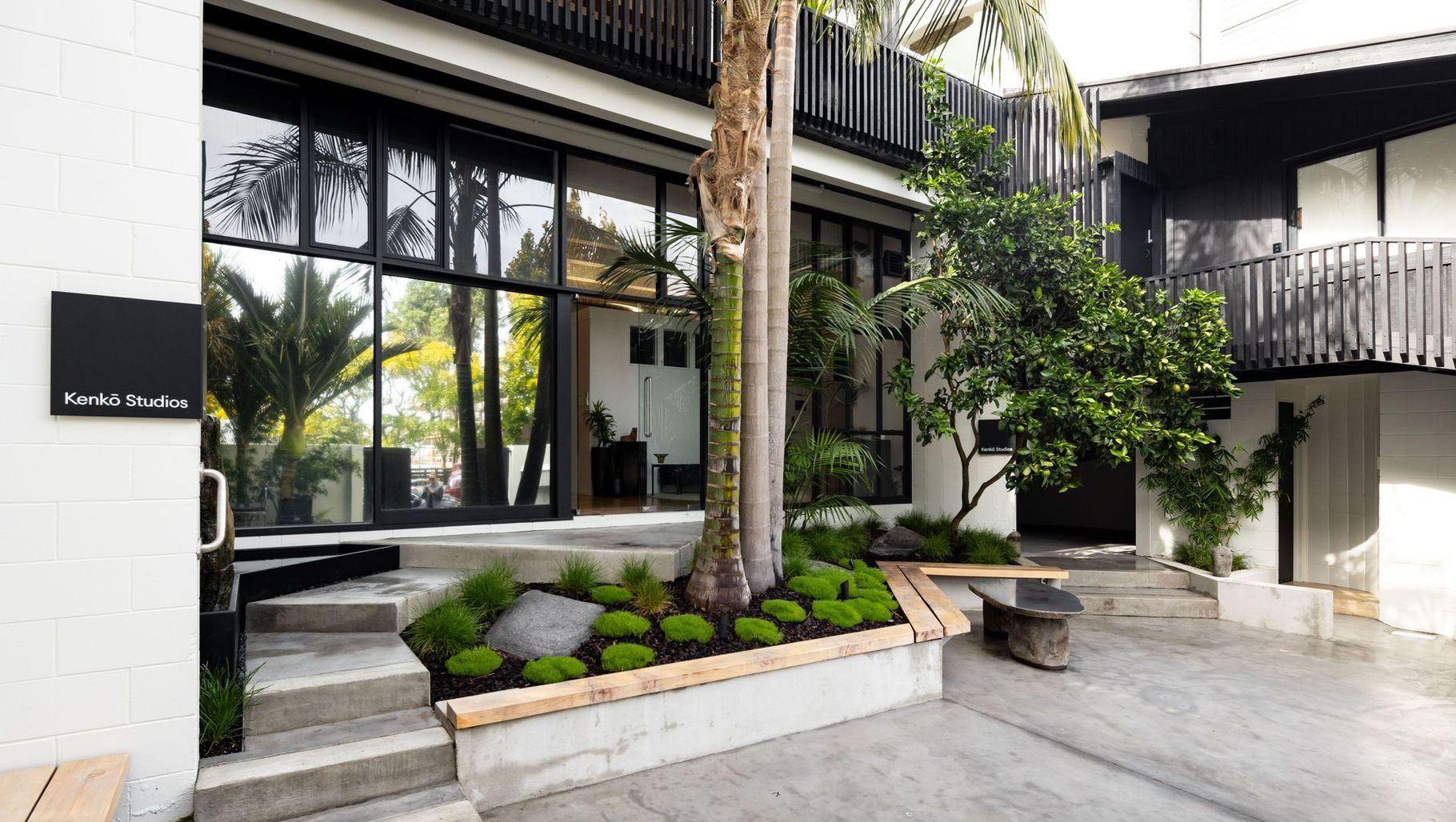 ArchiPro Project Summary - Kenkō Studios: A contemporary wellness collective in Auckland, completed in 2023, featuring a Zen courtyard, yoga studio, practitioner suites, and an urban retreat apartment, all designed to enhance community wellbeing through thoughtful, environmentally-friendly renovations.