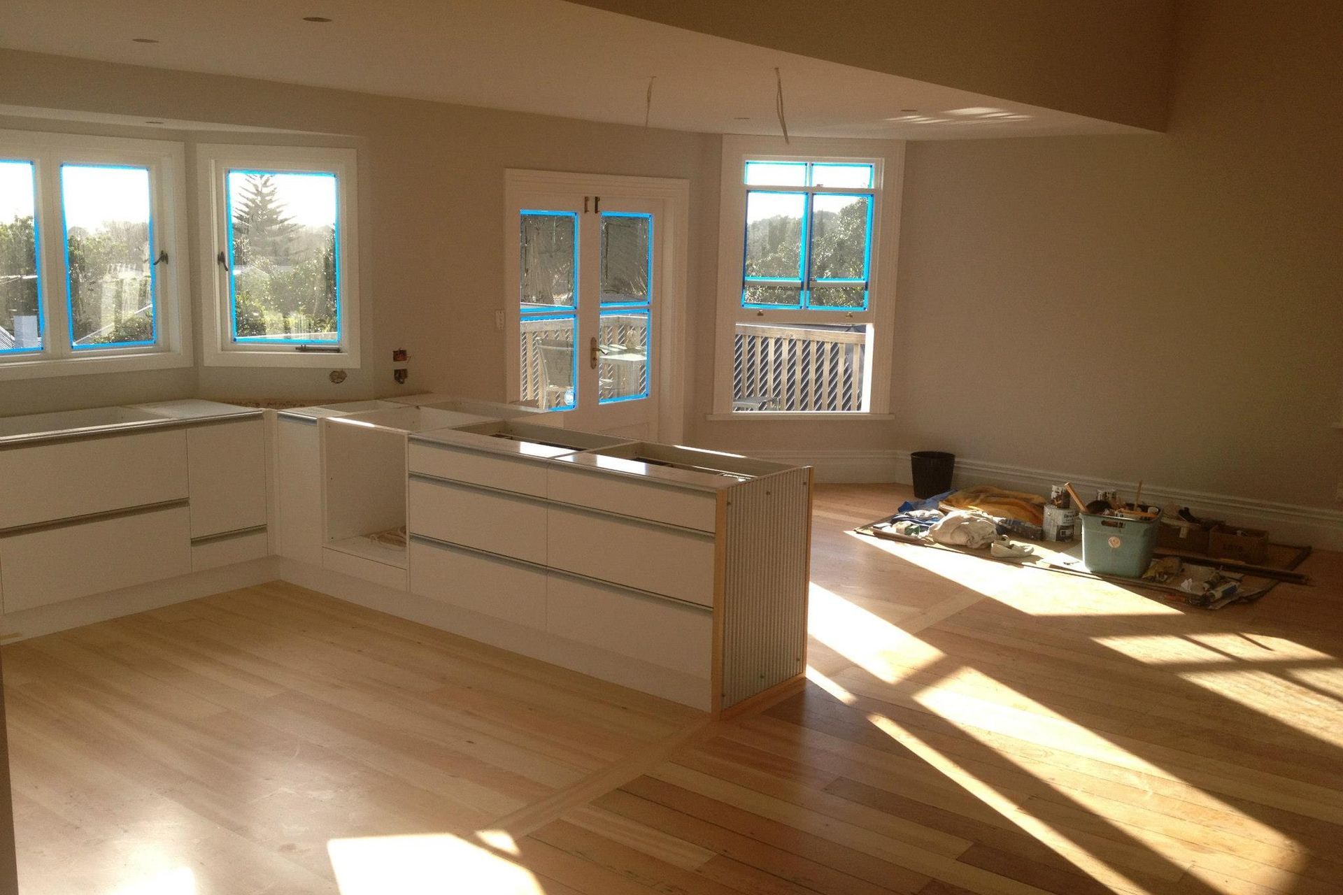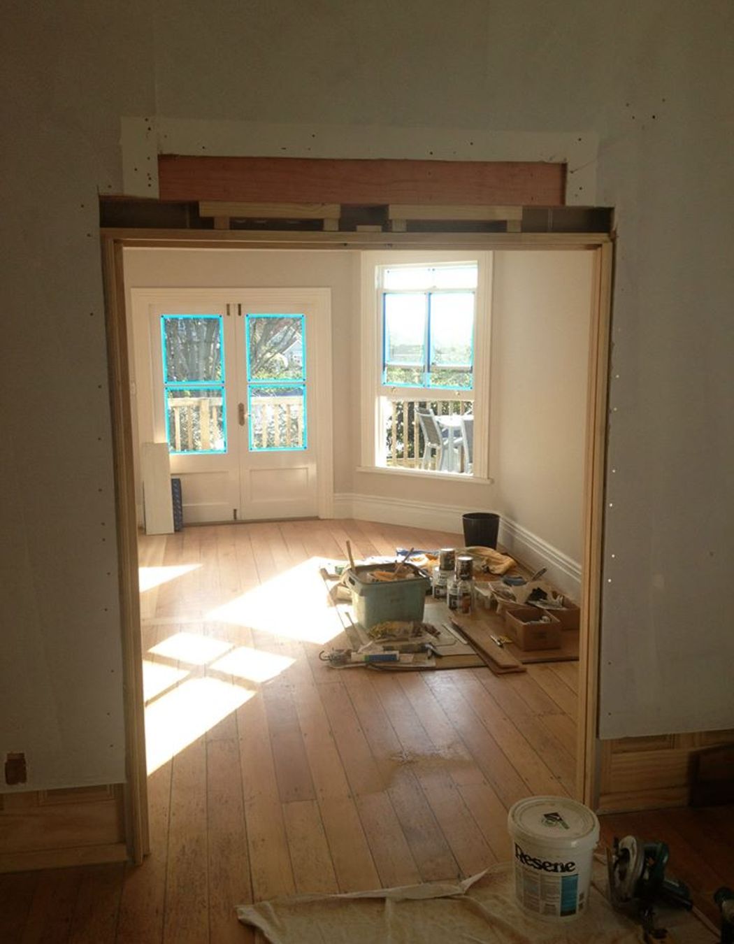 ArchiPro Project Summary - Kitchen renovation featuring a new cavity slider connecting the kitchen to the sitting room for enhanced space and functionality.