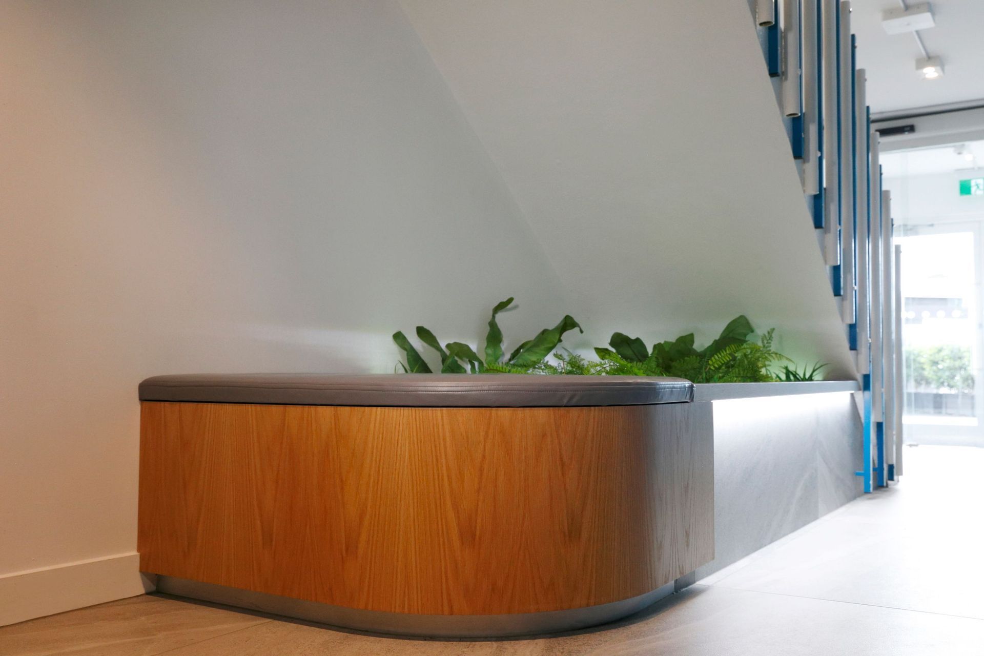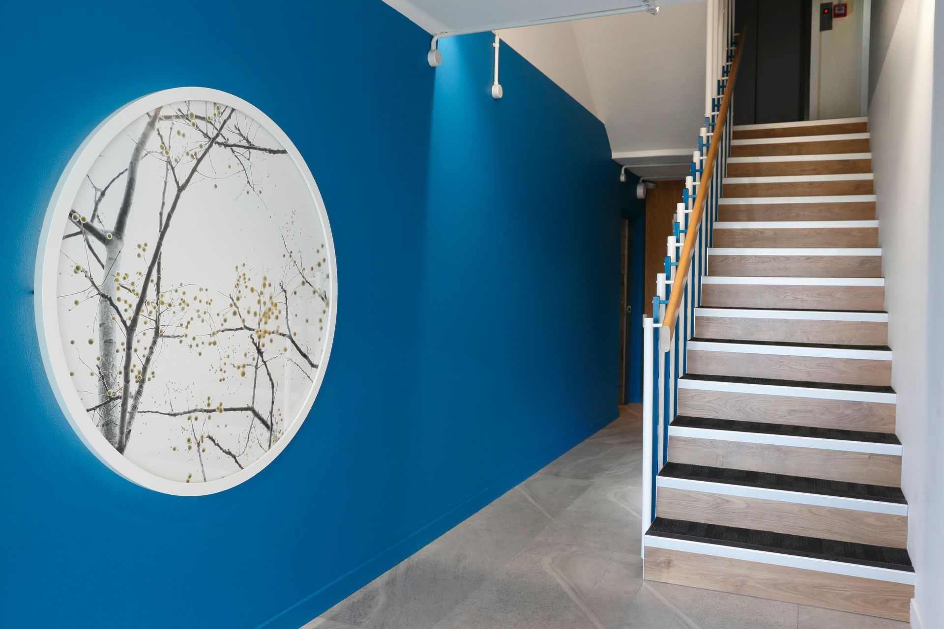 ArchiPro Project Summary - Seismic upgrade and revitalization of a 1970s apartment entrance lobby, enhancing its appeal with a clean design and featuring stunning artwork by Rachel Shields, creating a welcoming space for residents overlooking Kohimarama beach.
