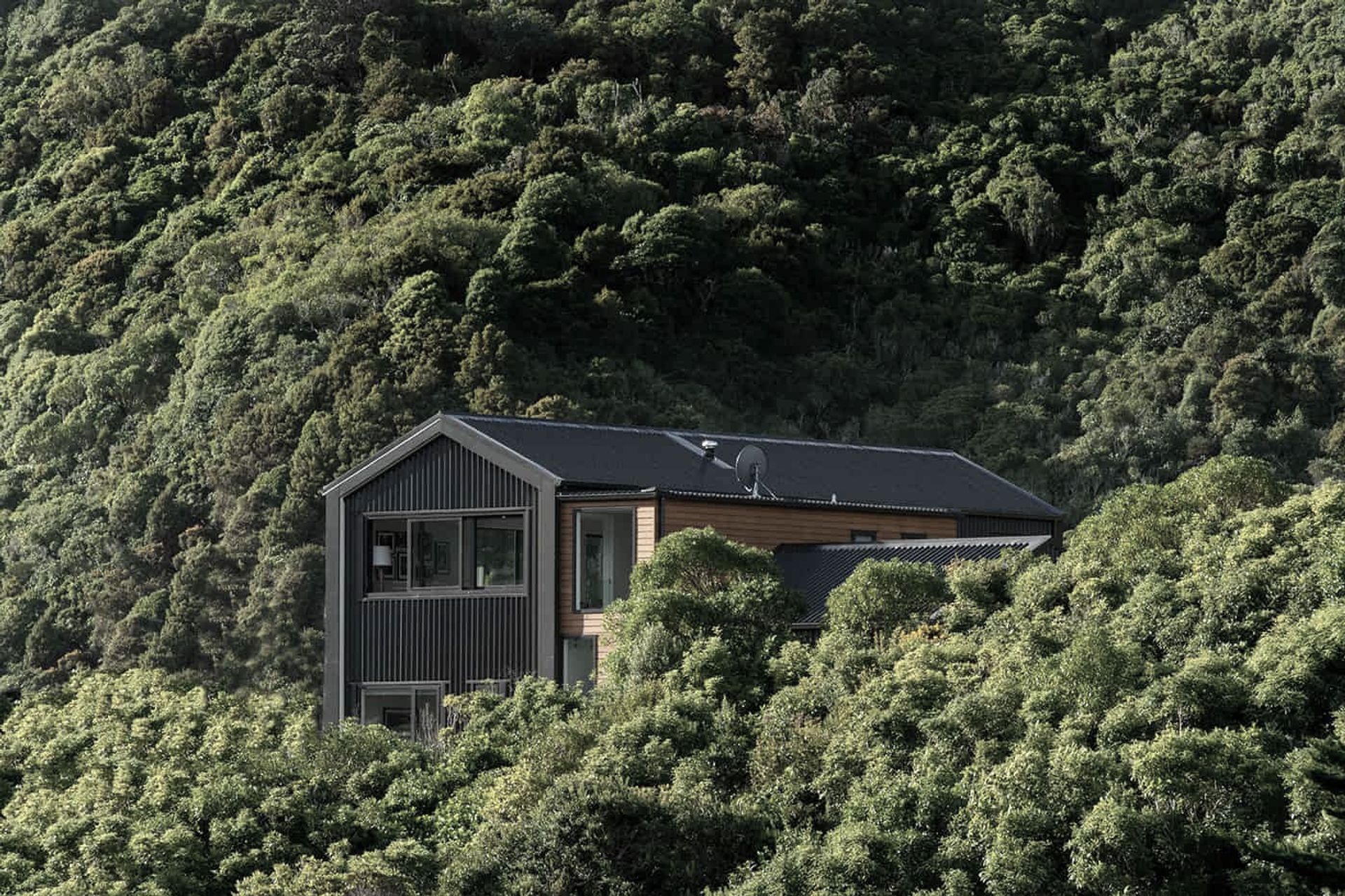 ArchiPro Project Summary - A stunning 3-bedroom residence nestled on a steep slope, featuring expansive living spaces on the upper level to capture breathtaking views and sunlight, complemented by a large deck and a harmonious design that integrates seamlessly with the surrounding native bush.