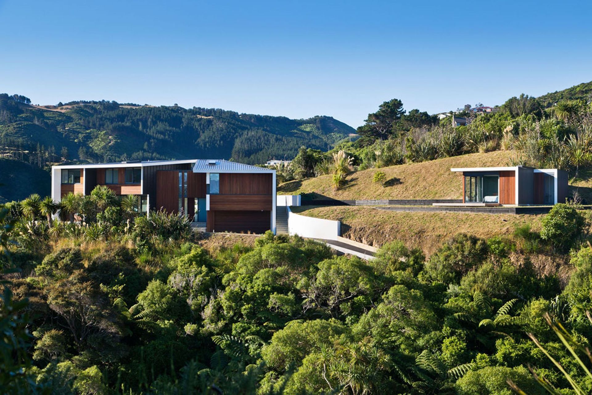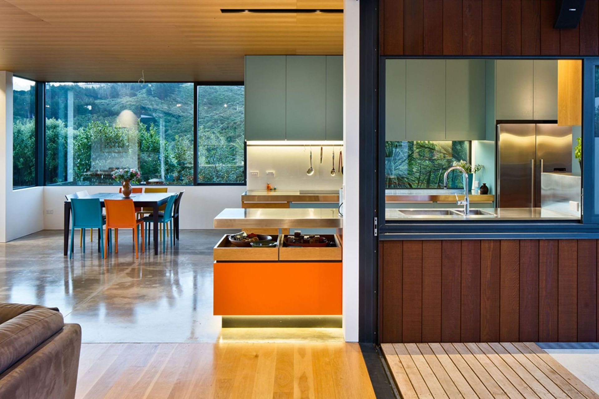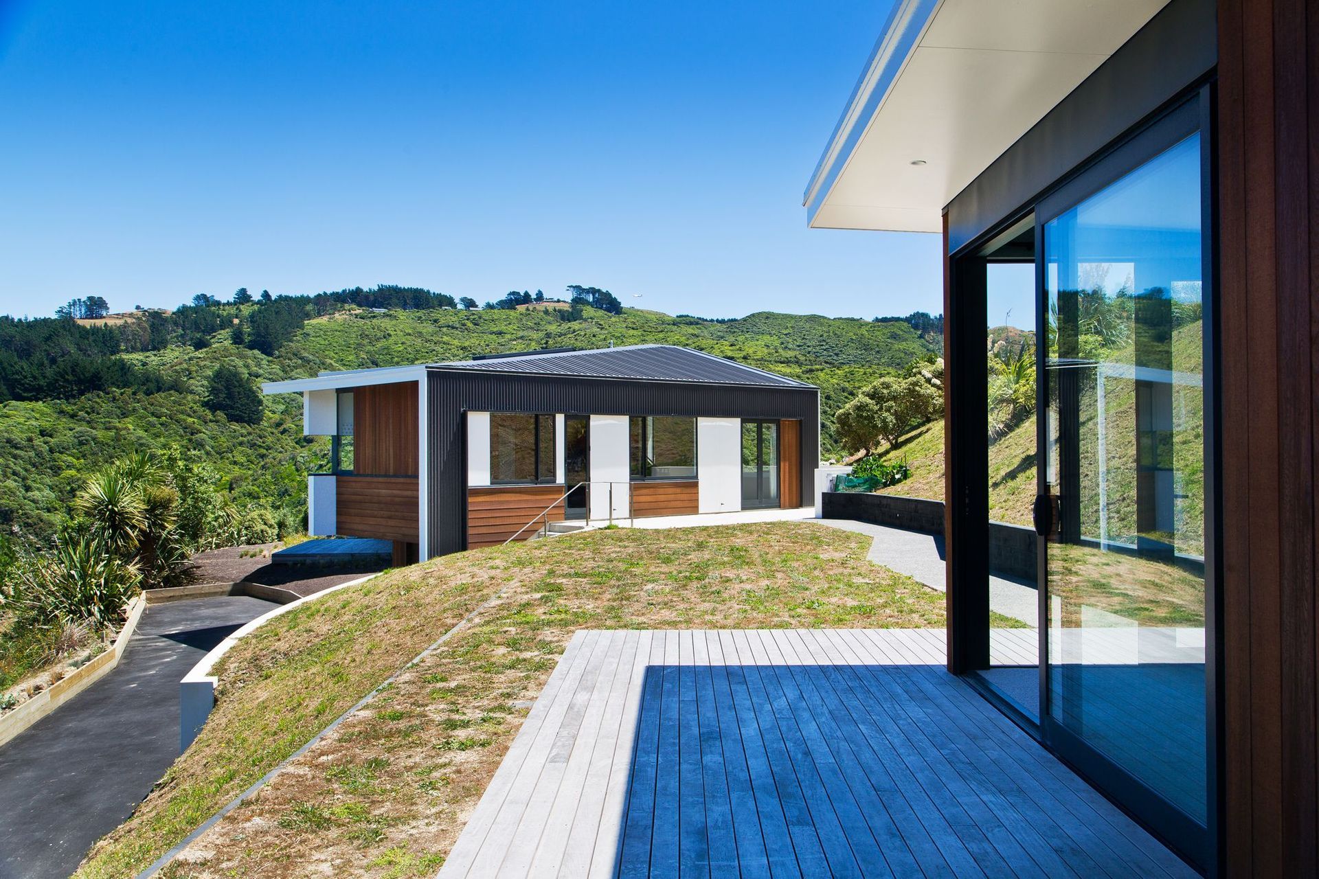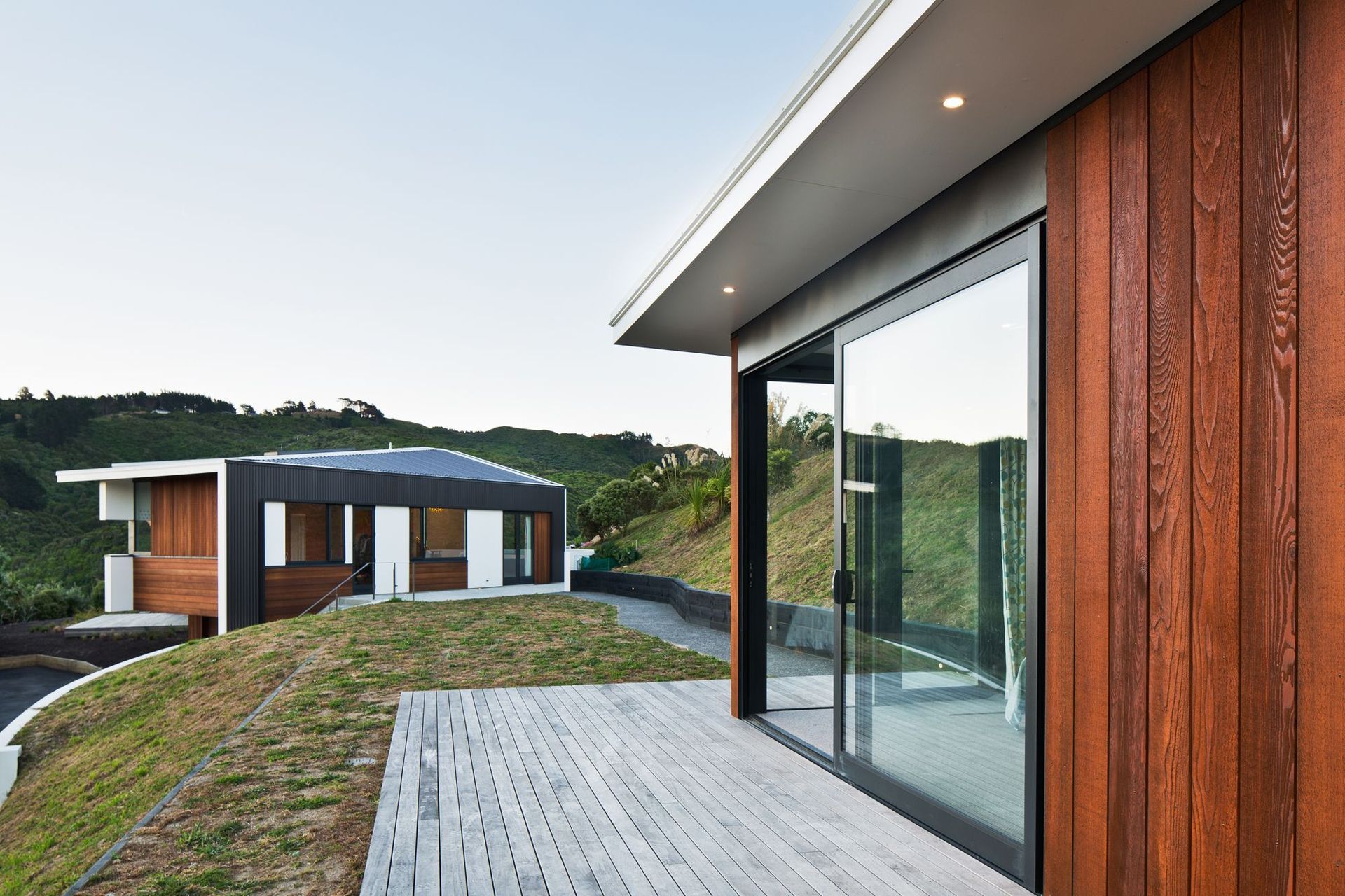 ArchiPro Project Summary - Award-winning five-bedroom family home in Lower Hutt, designed by Parsonson Architects, featuring polished concrete floors, natural wood accents, and large sliding doors that enhance views and connect the living space with nature.