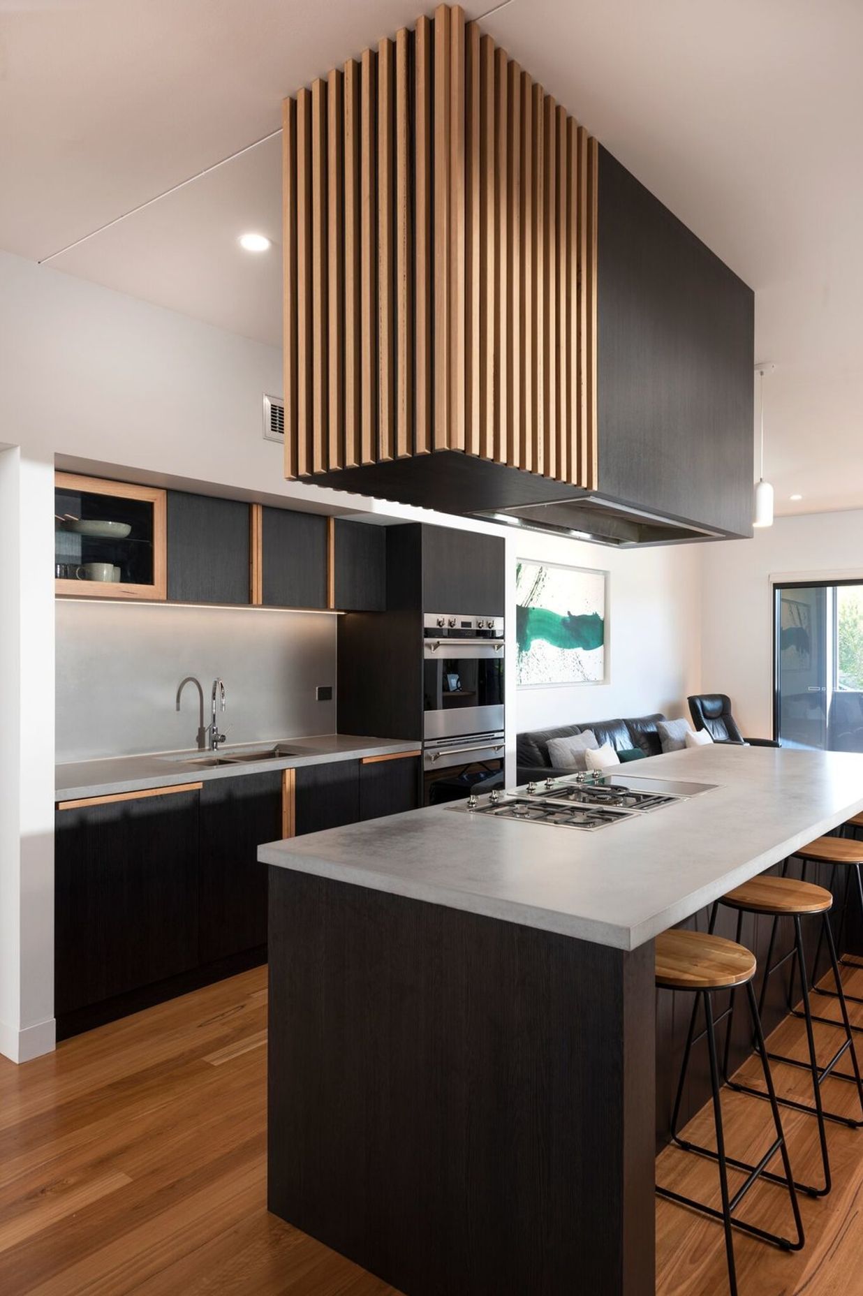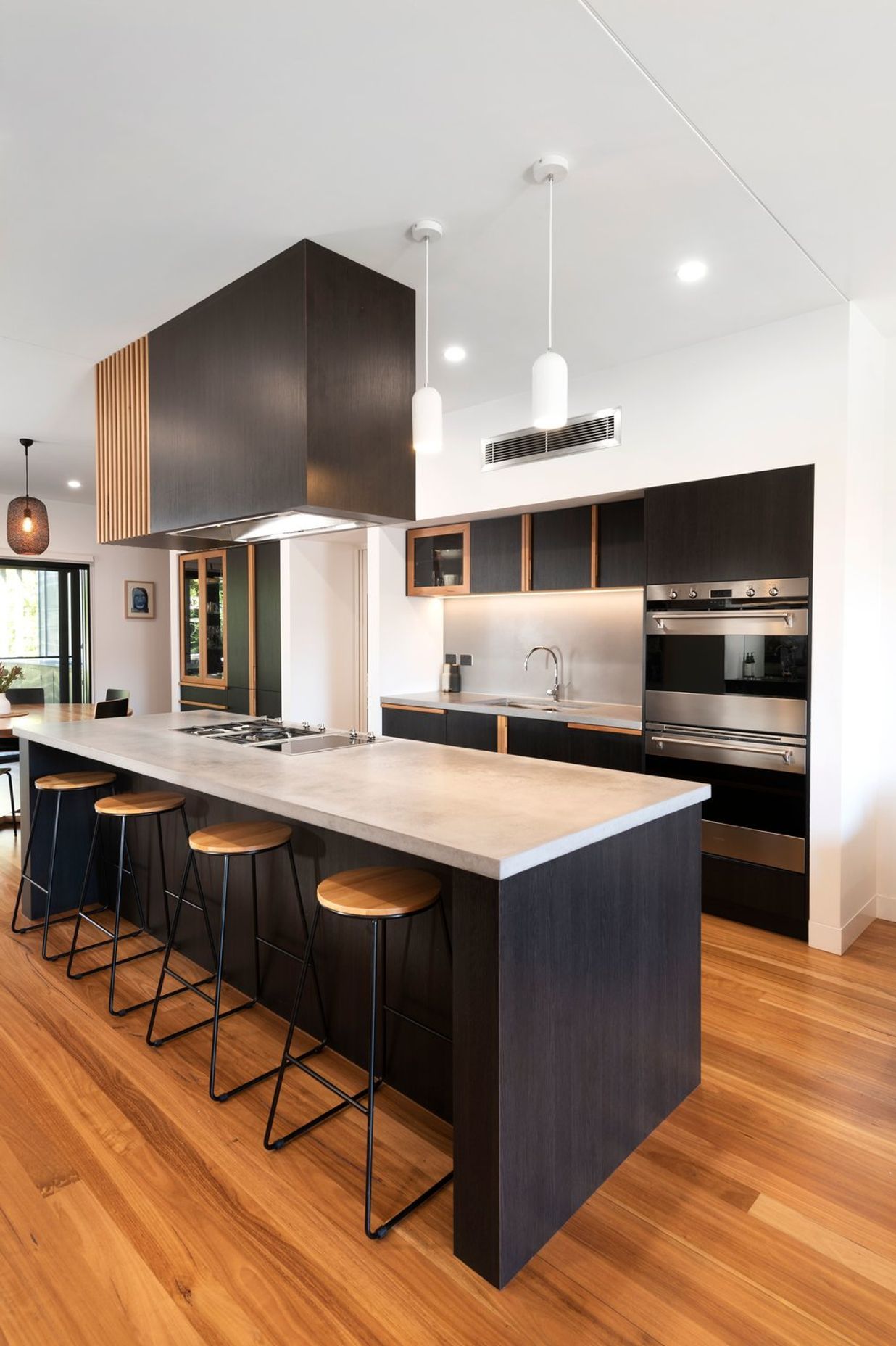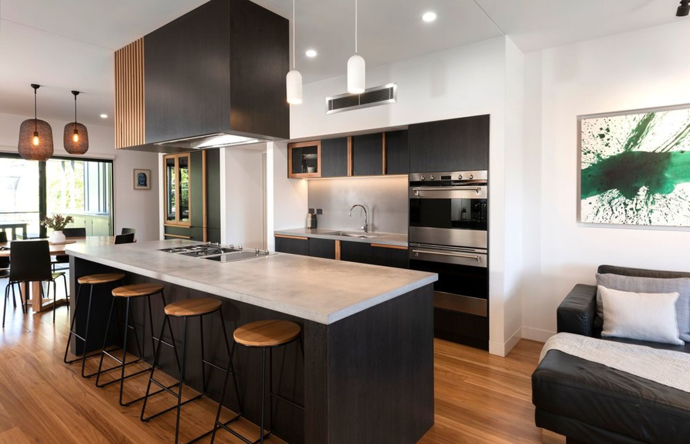 ArchiPro Project Summary - A bespoke renovation in Kotara South featuring custom joinery, polished concrete finishes, and solid blackbutt timber, creating a harmonious open-plan living space centered around a dream kitchen.