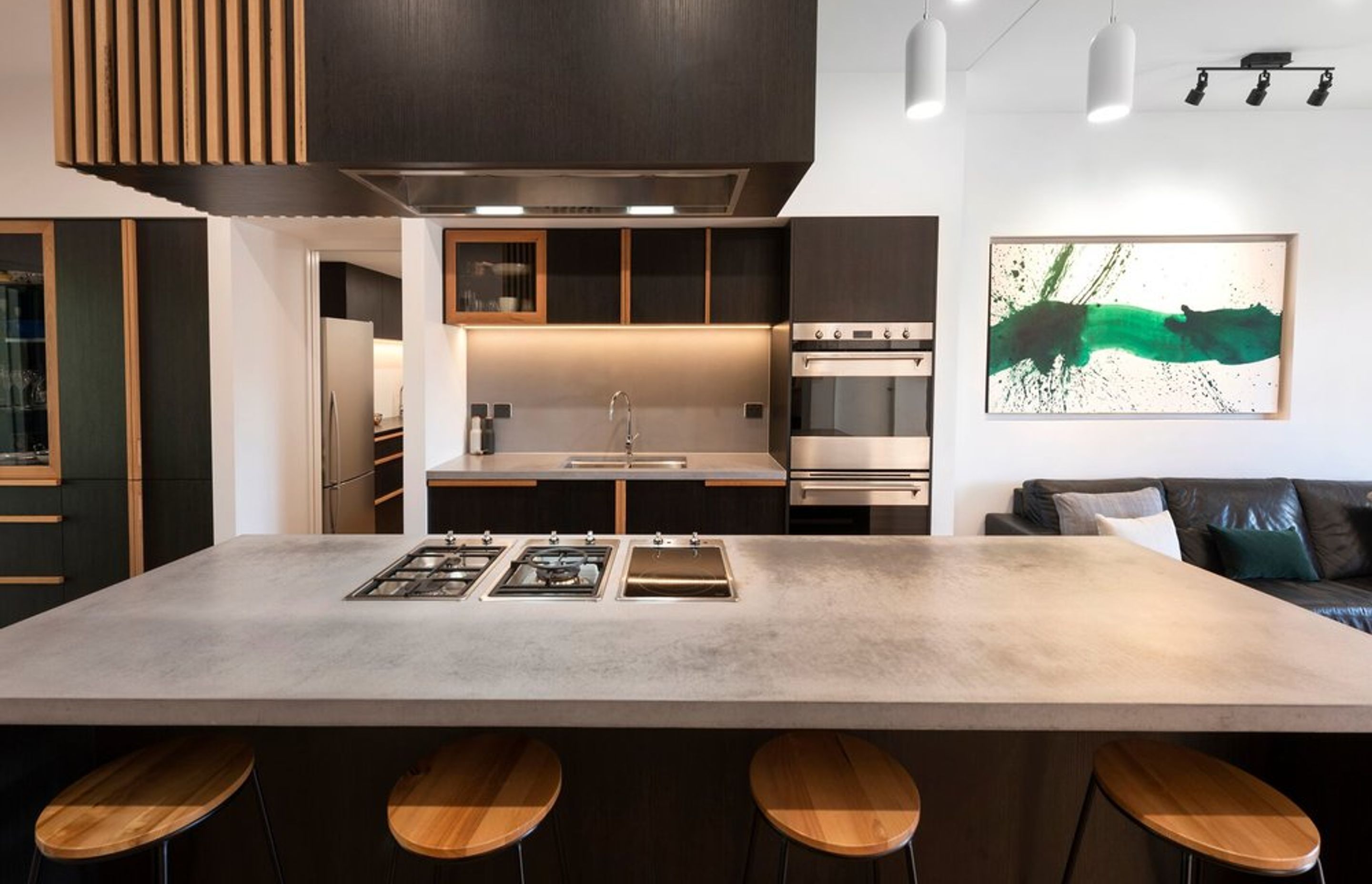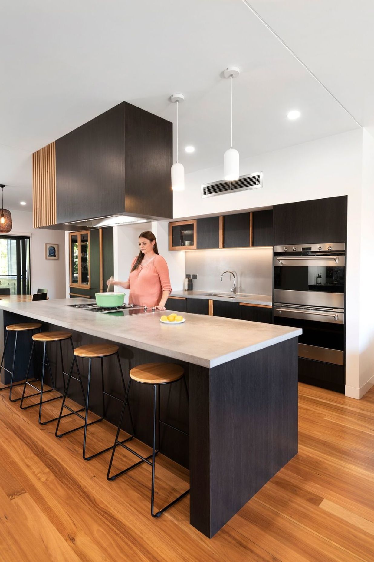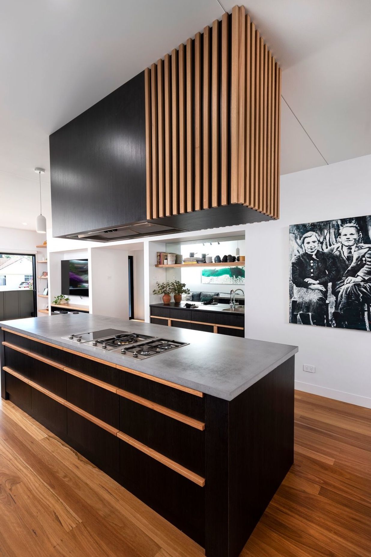ArchiPro Project Summary - A bespoke renovation in Kotara South featuring custom joinery, polished concrete finishes, and solid blackbutt timber, creating a harmonious open-plan living space centered around a dream kitchen.