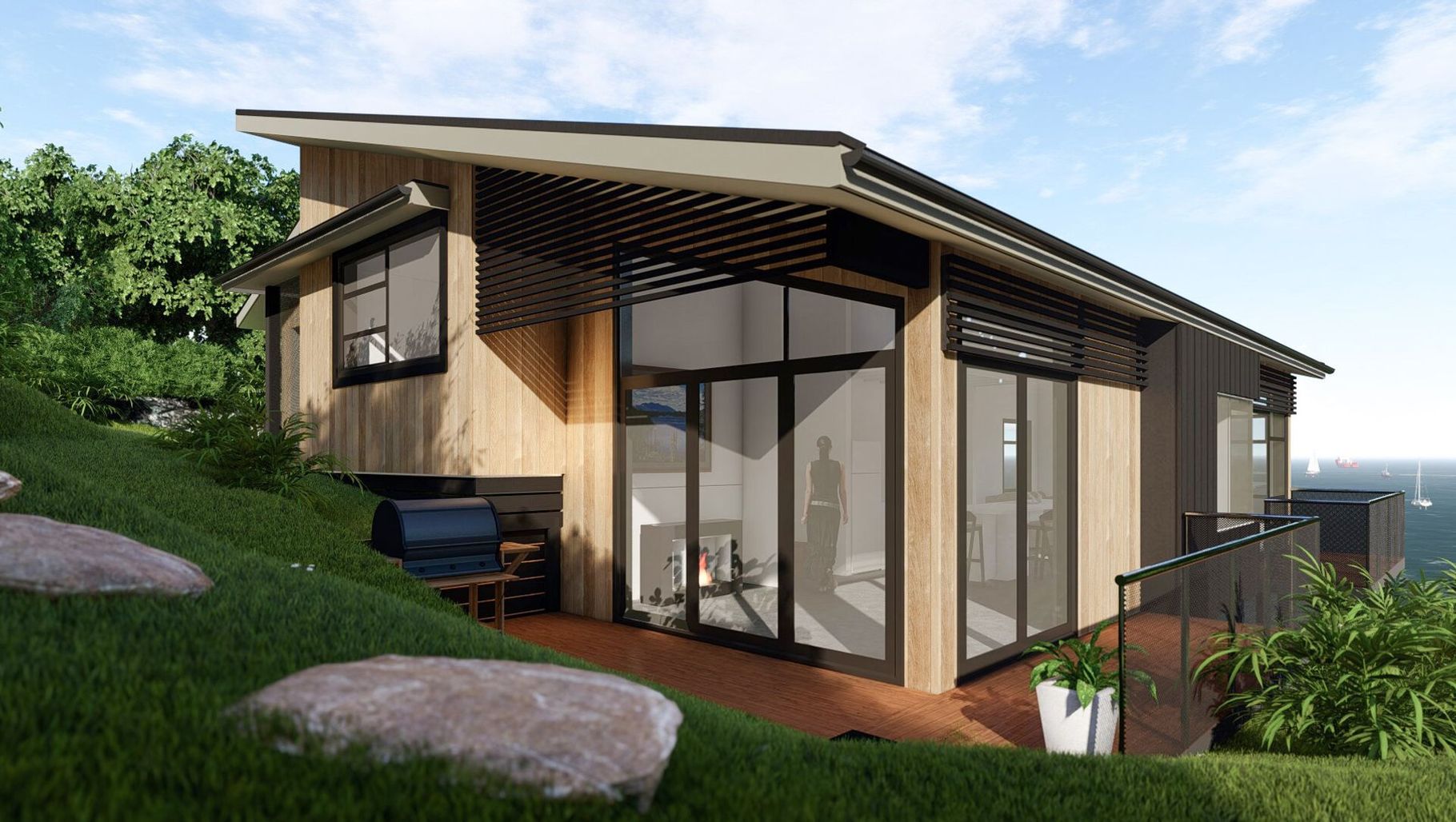 ArchiPro Project Summary - The Kōwhai House showcases modern architecture with wood siding and a cottage-style design, offering a sustainable and inviting living space.