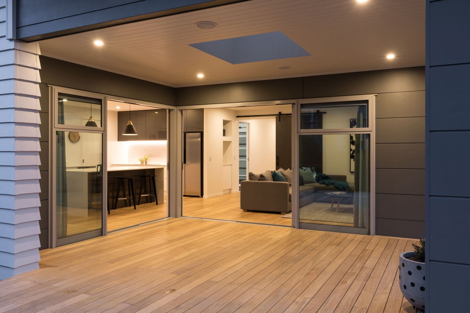 ArchiPro Project Summary - The Kumeu Home features modern architecture with traditional design elements, high-quality siding, and a Hacienda M style, creating a warm and inviting atmosphere.