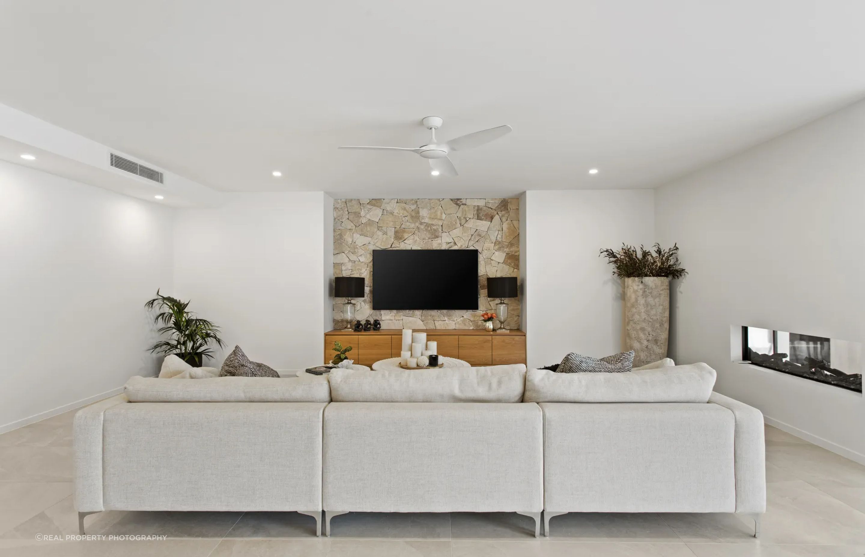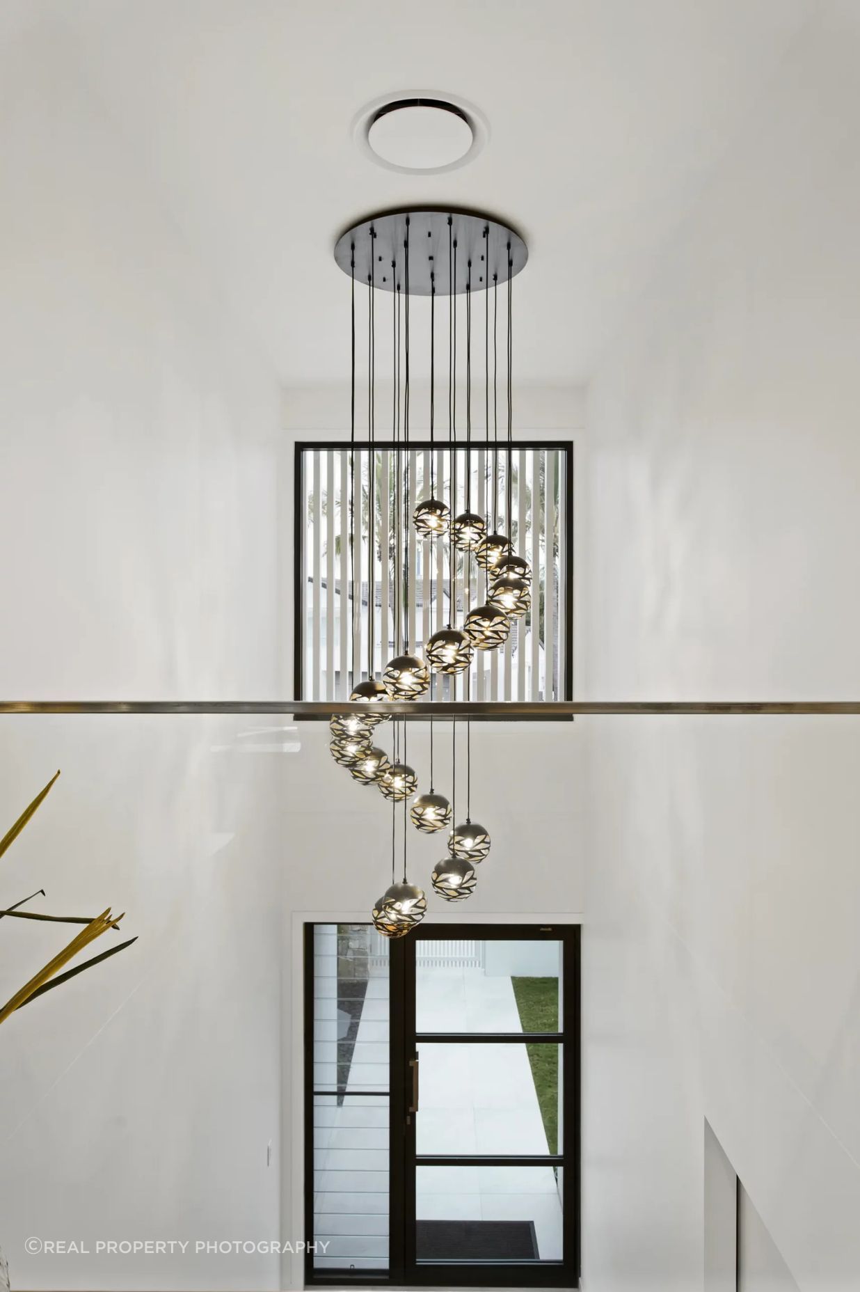 ArchiPro Project Summary - La Viva: A luxurious four-bedroom, five-bath architectural home designed for entertaining, featuring a stunning Oslo stone wall, expansive ground floor living spaces, and a year-round pool pavilion for elegant gatherings.