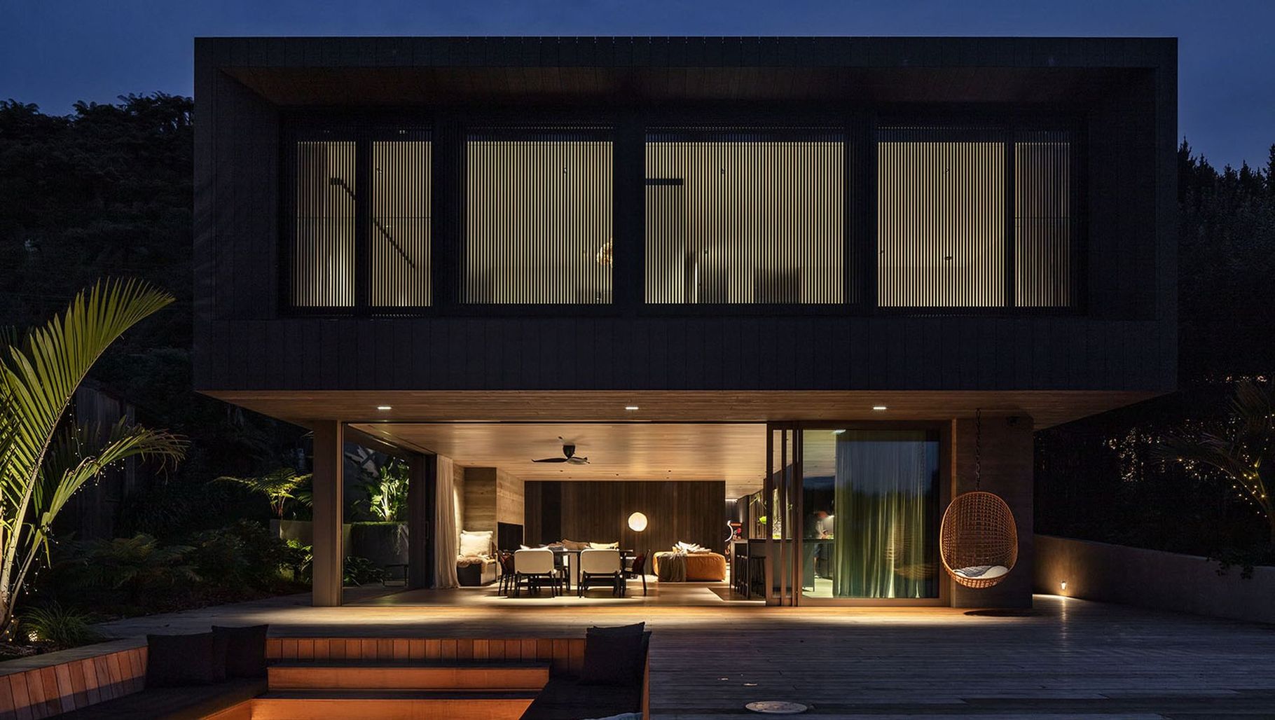 ArchiPro Project Summary - A serene lake house designed to harmonize with its environment, featuring discreet lighting solutions that create subtle pools of illumination while maintaining a moody atmosphere.