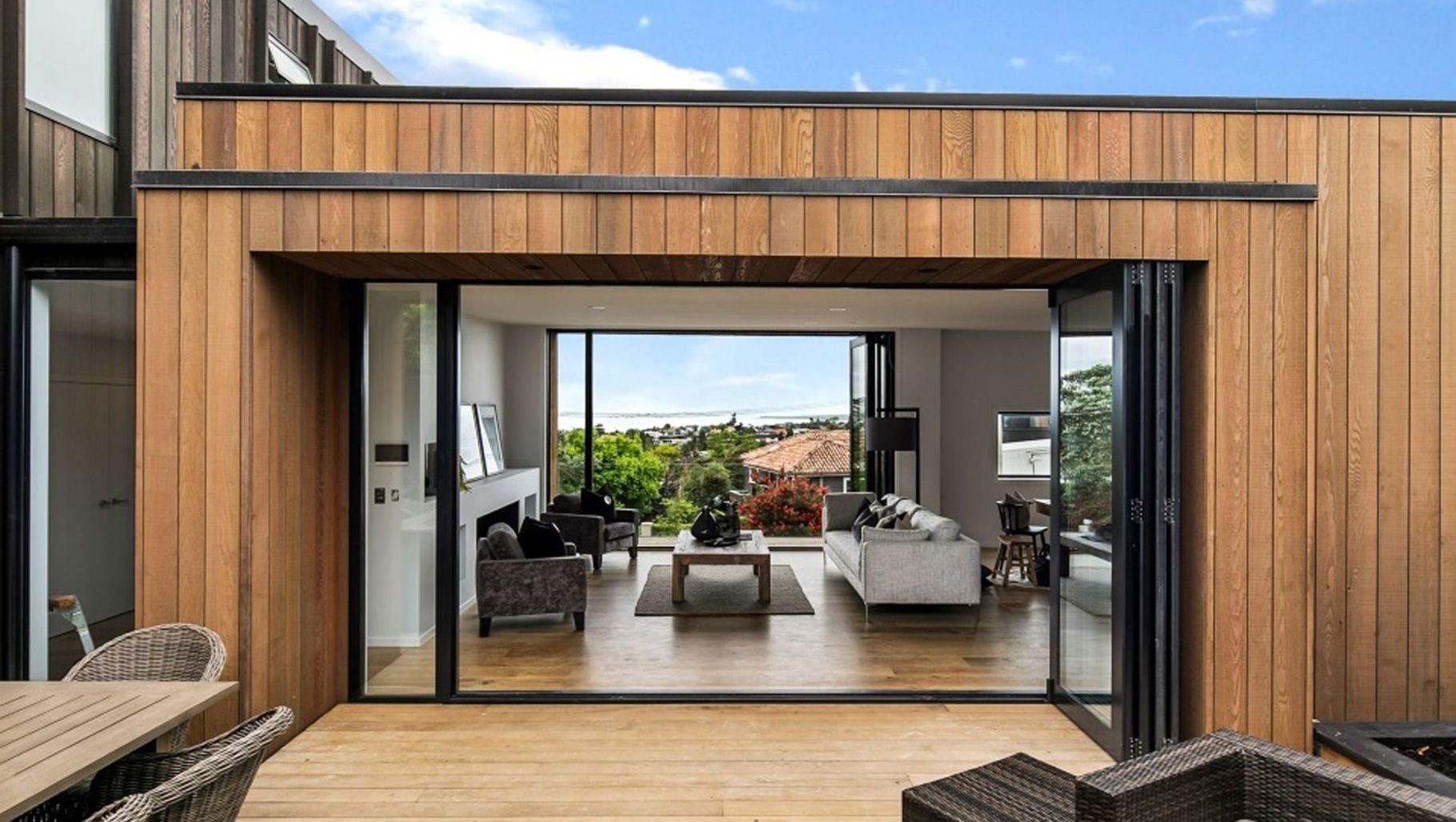 ArchiPro Project Summary - Contemporary three-storey family home in Auckland featuring four bedrooms, four bathrooms, and expansive living spaces with stunning views, designed with structural innovation and a seamless indoor-outdoor flow.