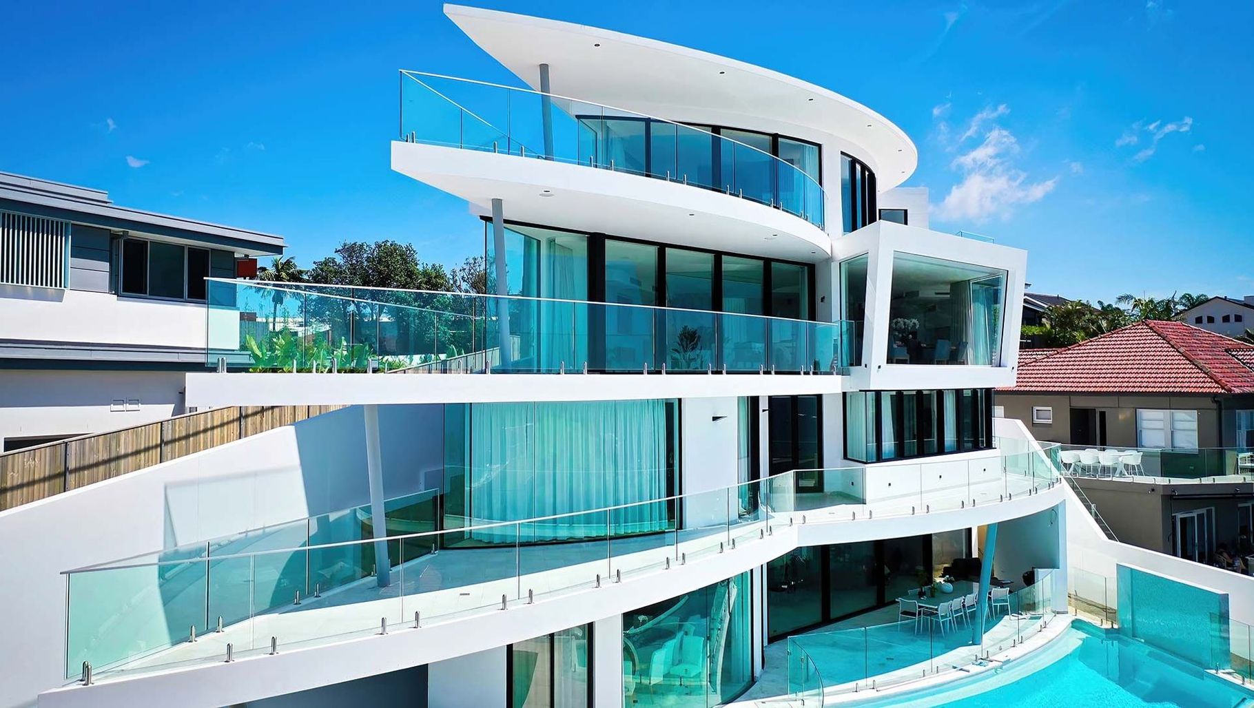ArchiPro Project Summary - Luxurious multi-level residence featuring panoramic ocean views and bespoke bent glass balustrading, designed by Paul Clout Design in collaboration with Sydney Frameless Glass for a seamless architectural experience.