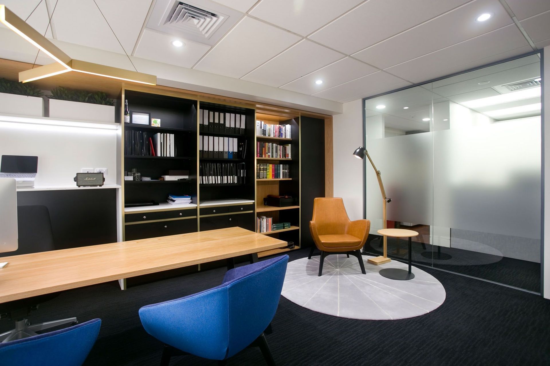 ArchiPro Project Summary - A sophisticated lawyer's office fitout featuring custom oak joinery, premium furnishings, and ergonomic solutions, designed to enhance functionality and aesthetics for a modern legal workspace.