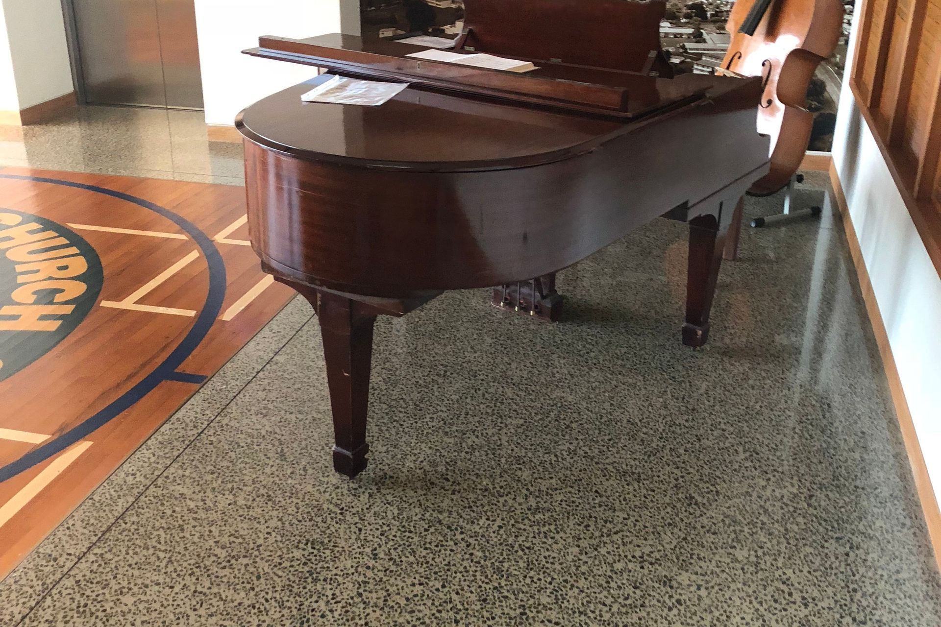 ArchiPro Project Summary - The LDS Pacific Church features modern design with composite materials, concrete, and elegant flooring, creating a serene atmosphere for community engagement.