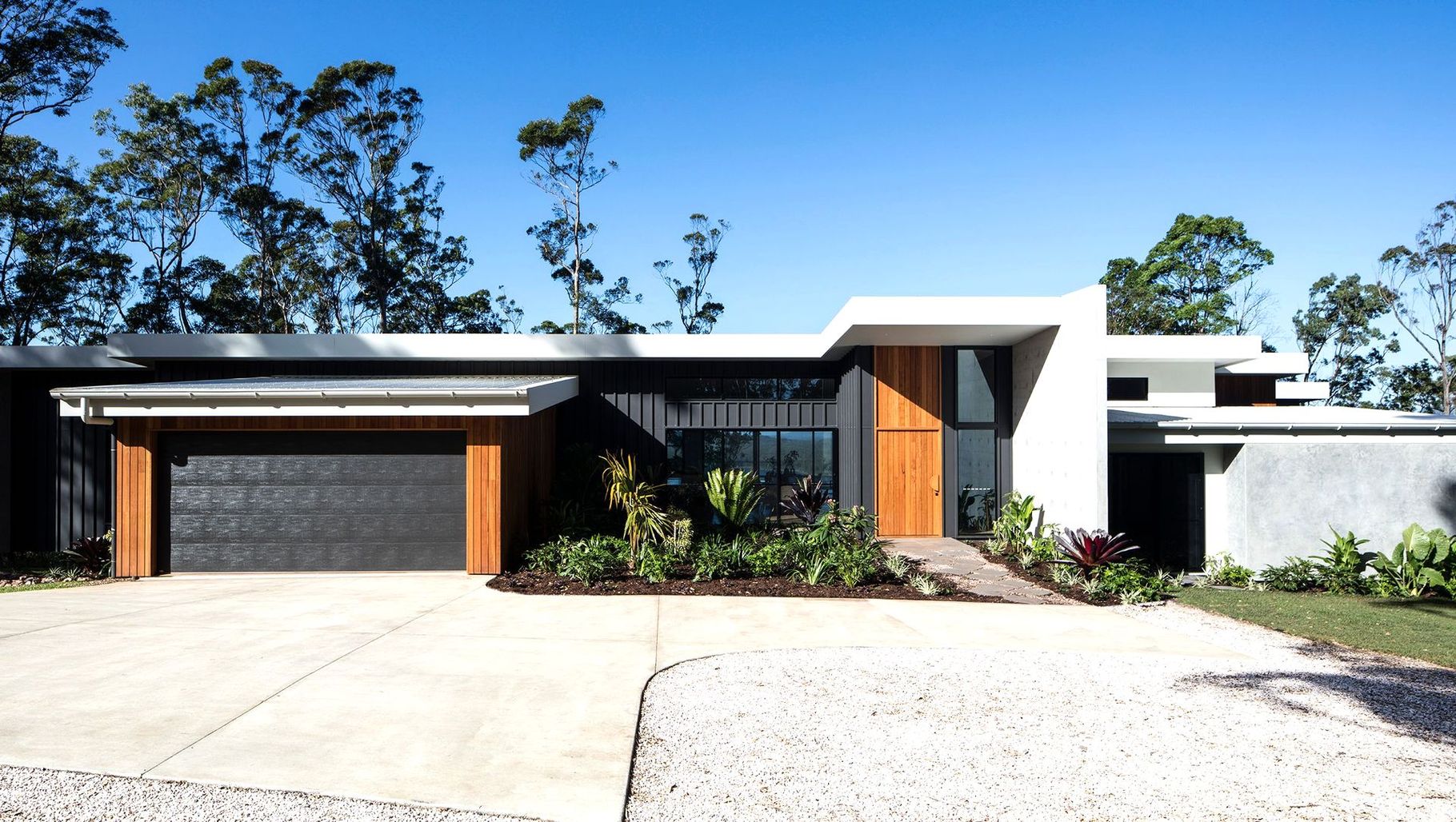 ArchiPro Project Summary - A modern, single-level residence harmoniously integrated with the natural landscape, offering stunning views of the Glass House Mountains and Ewen Maddock Dam.