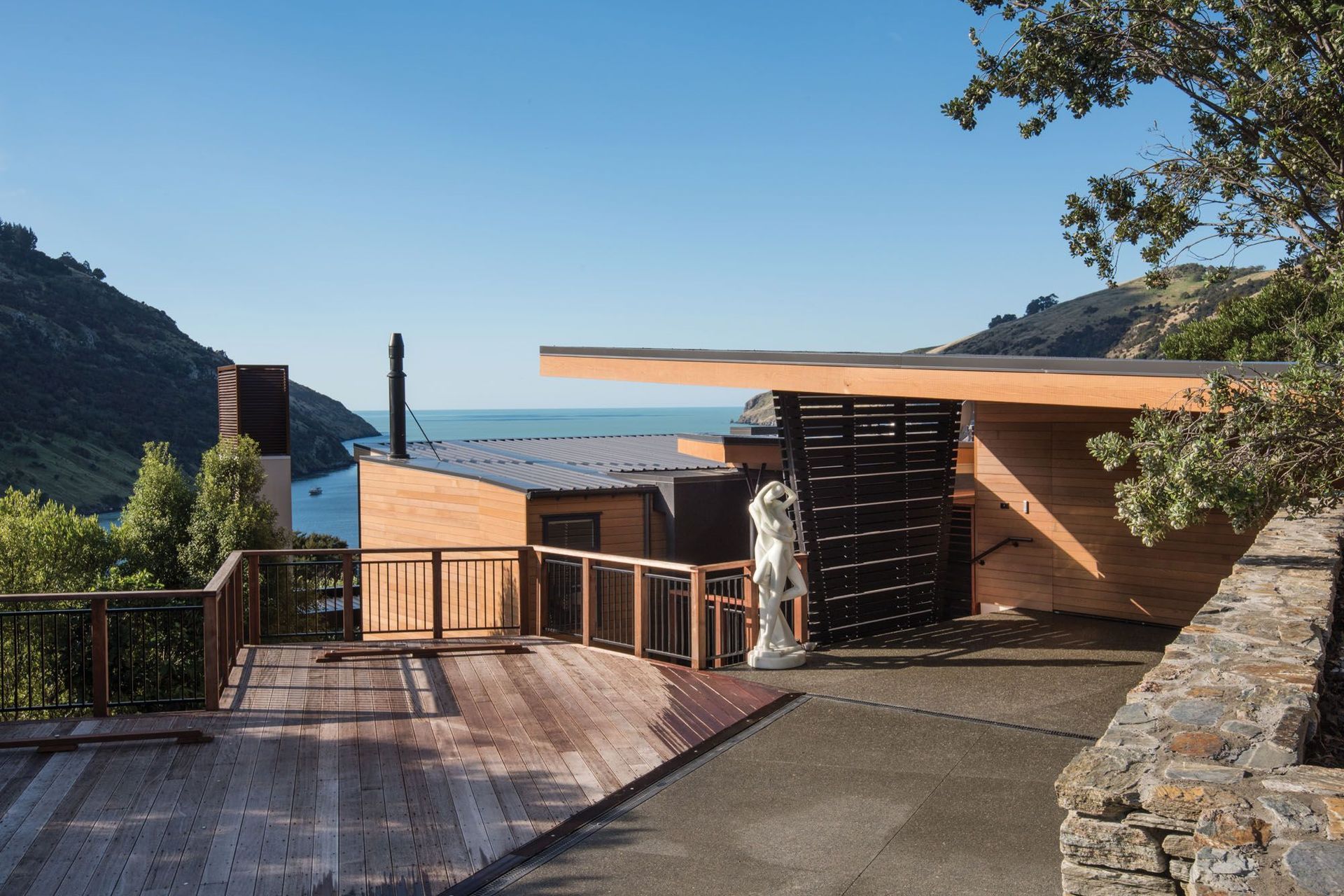 ArchiPro Project Summary - Extensive renovation of a traditional Kiwi bach into a high-end architectural home, featuring cedar cladding, meticulous interior finishes, and innovative outdoor living spaces, all while overcoming logistical challenges in a remote coastal location.