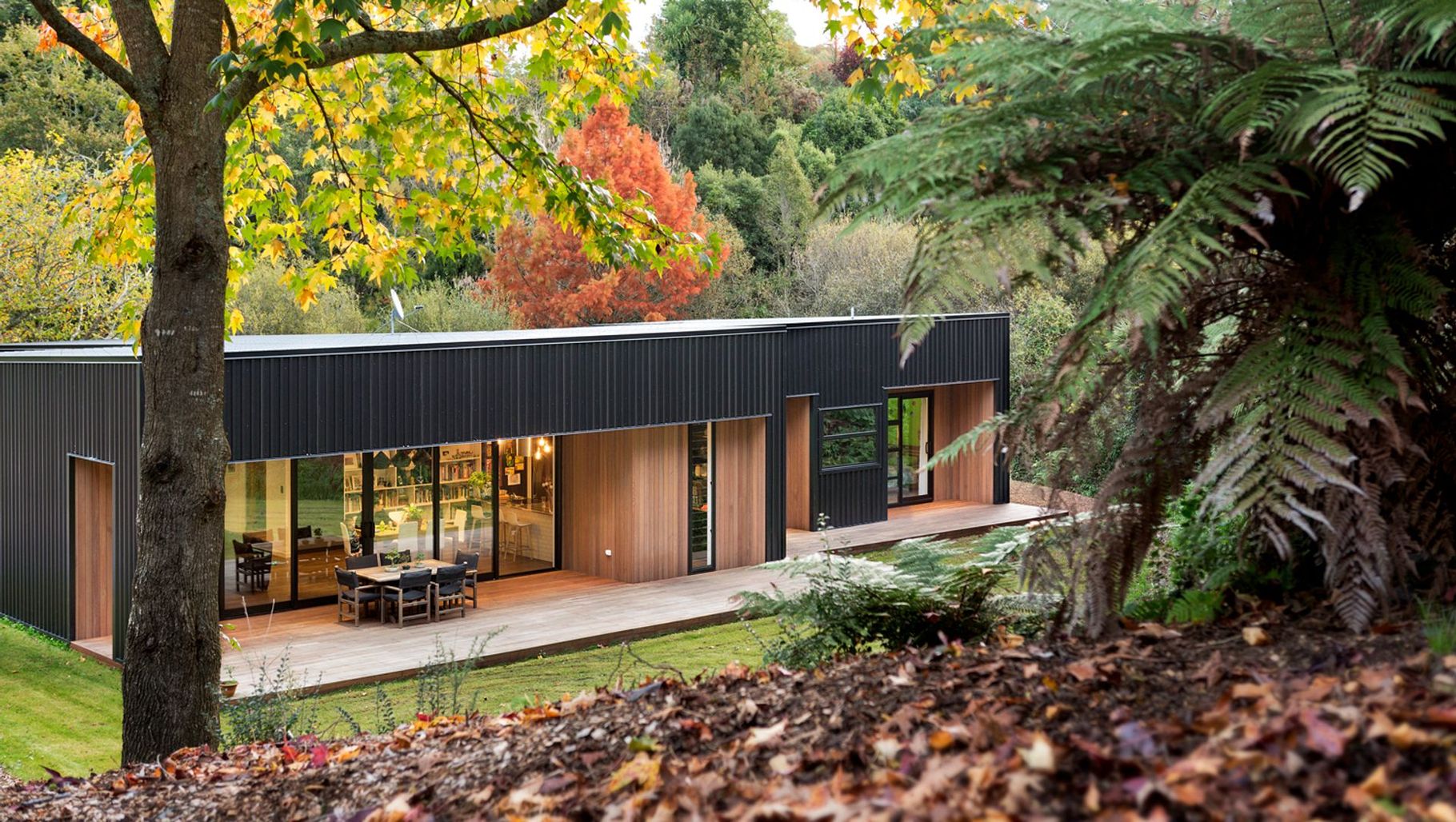 ArchiPro Project Summary - A thoughtfully designed family home nestled in a serene Waikato gully, featuring durable materials and energy-efficient solutions, seamlessly blending with its natural surroundings.
