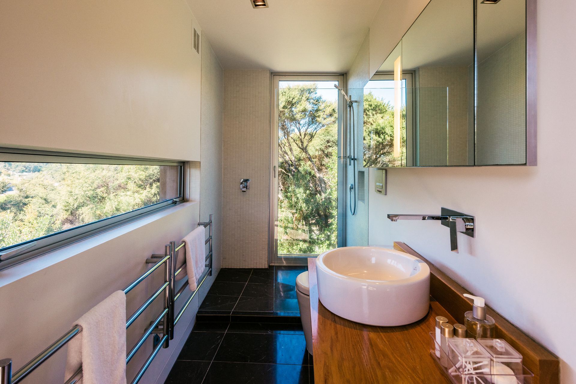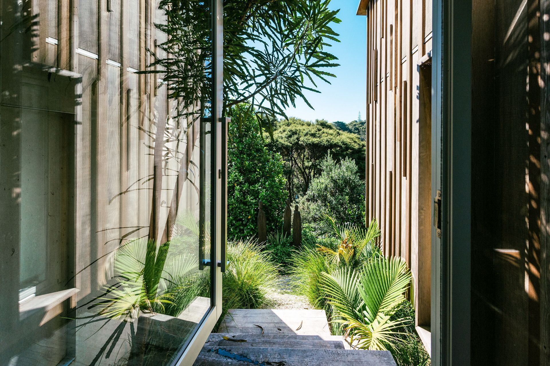 ArchiPro Project Summary - Award-winning Waiheke home designed as a journey through native Kanuka and Manuka trees, featuring interconnected forms, steps, and bridges that create a unique treehouse-like experience.