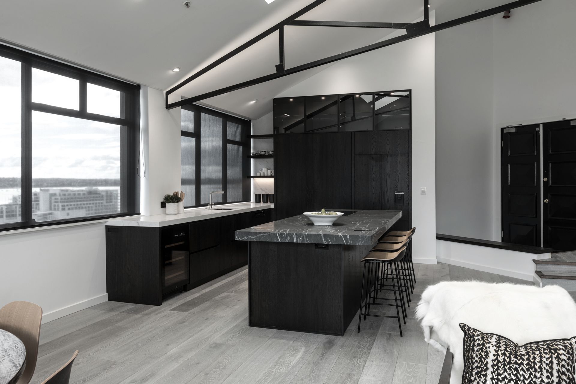 ArchiPro Project Summary - A modern Loft Apartment featuring elegant interior design, quality flooring, and a stylish kitchen with wood accents.