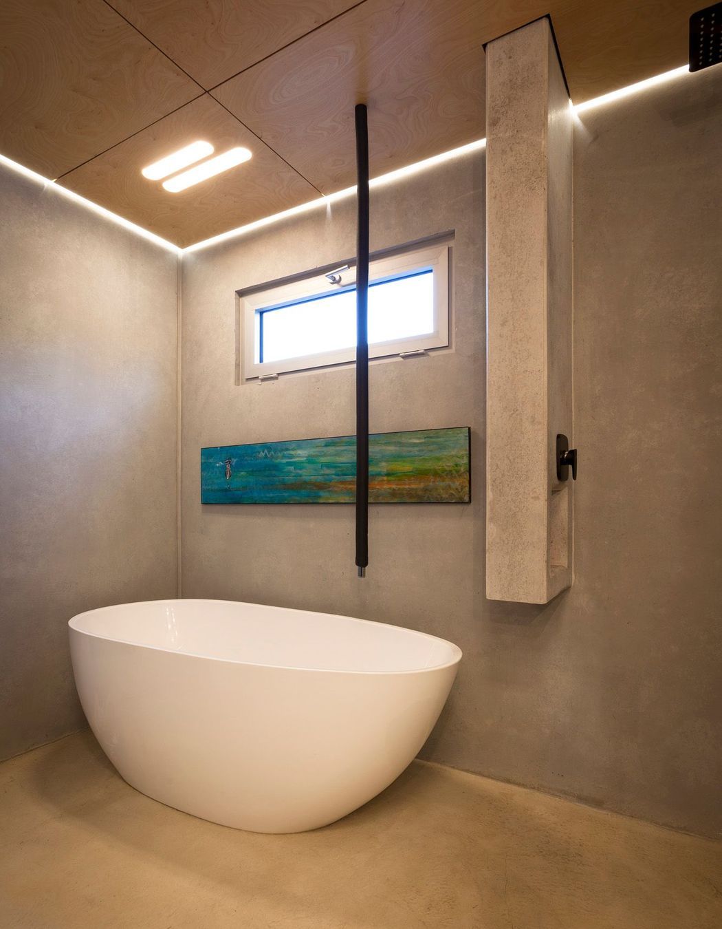 ArchiPro Project Summary - Award-winning Long Bay House featuring a unique blend of commercial structure and high-end residential finishes, showcasing innovative design elements including a striking floating staircase.