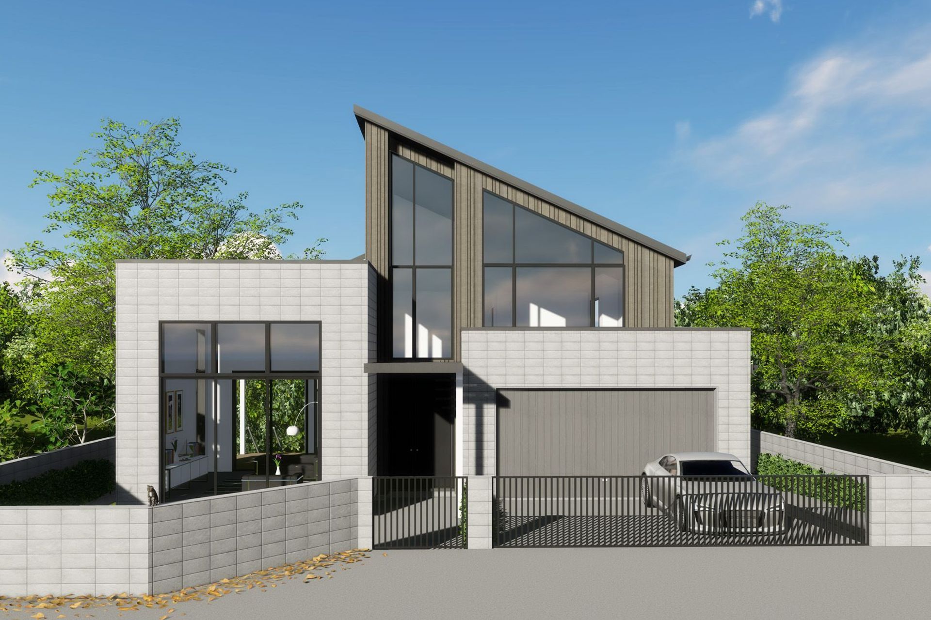 ArchiPro Project Summary - Spacious family residence in Longbay, Auckland, featuring a high mono pitch roof, optimized for sunlight and views, with a focus on cost-effectiveness and versatile indoor/outdoor living spaces.