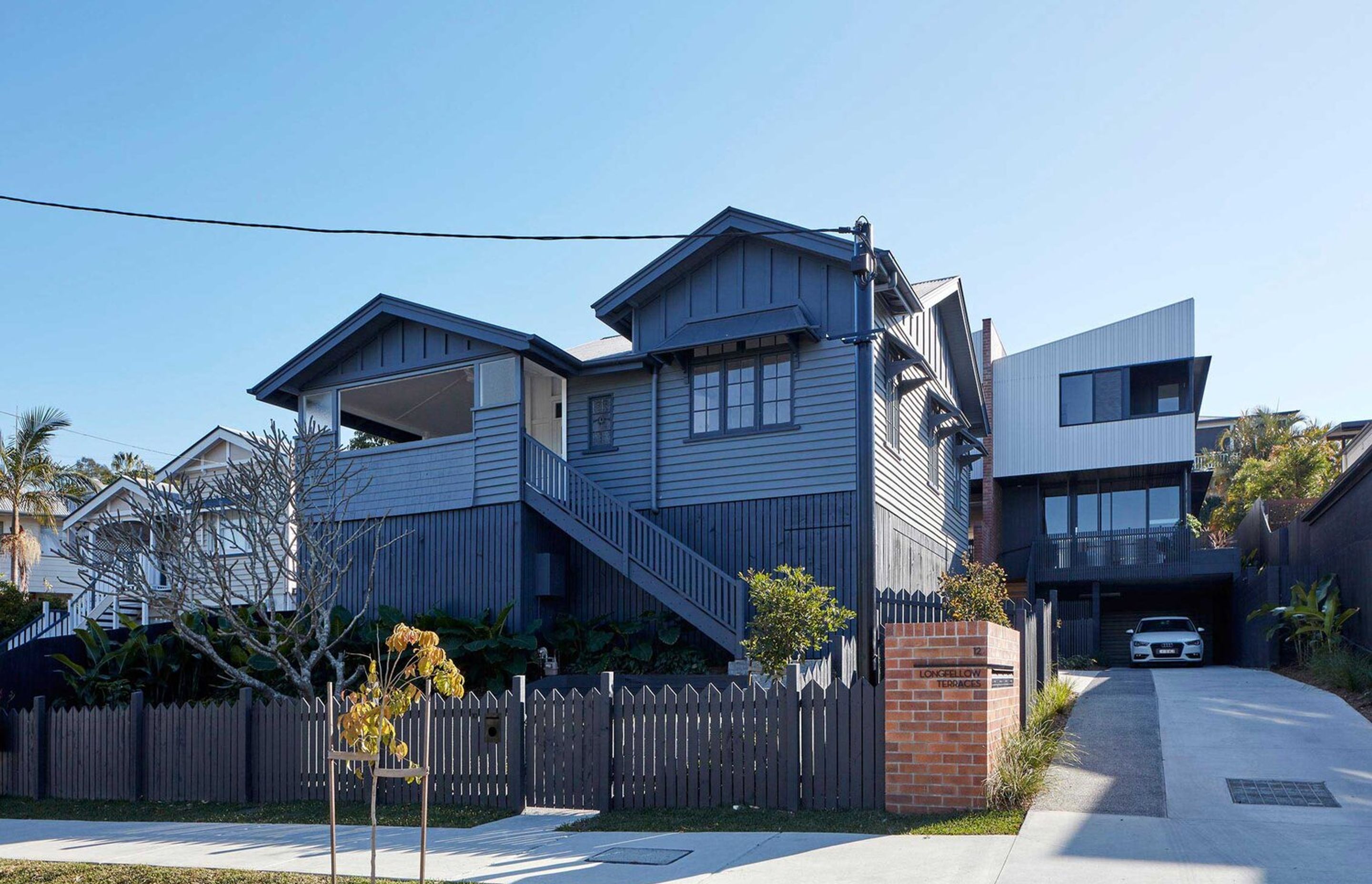 ArchiPro Project Summary - Longfellow Terraces: A sustainable infill development in Norman Park, Brisbane, showcasing innovative design that harmonizes with nature while addressing urban densification challenges.