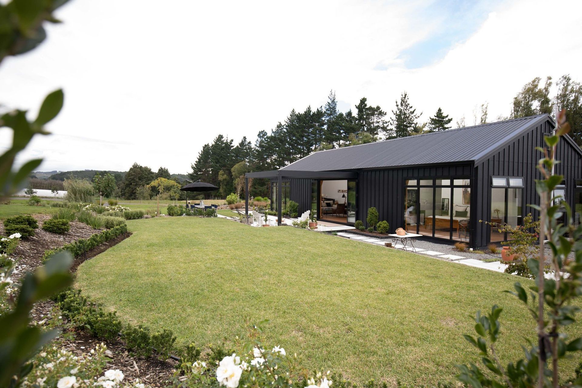 ArchiPro Project Summary - Longhouse Dream features a striking blend of Triclad board and batten cladding, complemented by Colorsteel roofing and rainwater systems, showcasing sustainable materials and contemporary design in Ramarama.