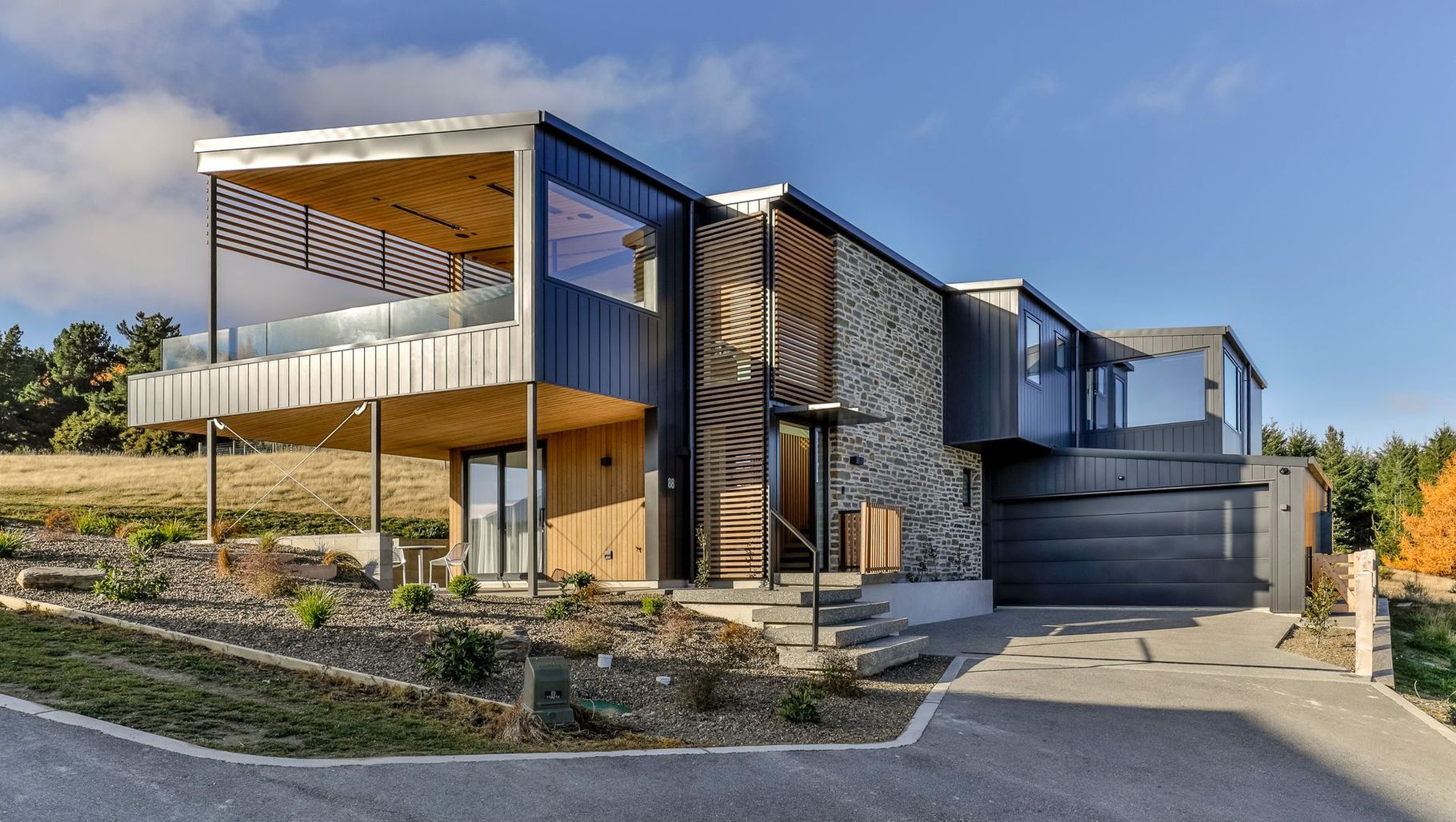 ArchiPro Project Summary - A modern retreat overlooking Lake Wānaka, designed for family gatherings with seamless indoor-outdoor flow, durable materials, and breathtaking views, completed in 2024.
