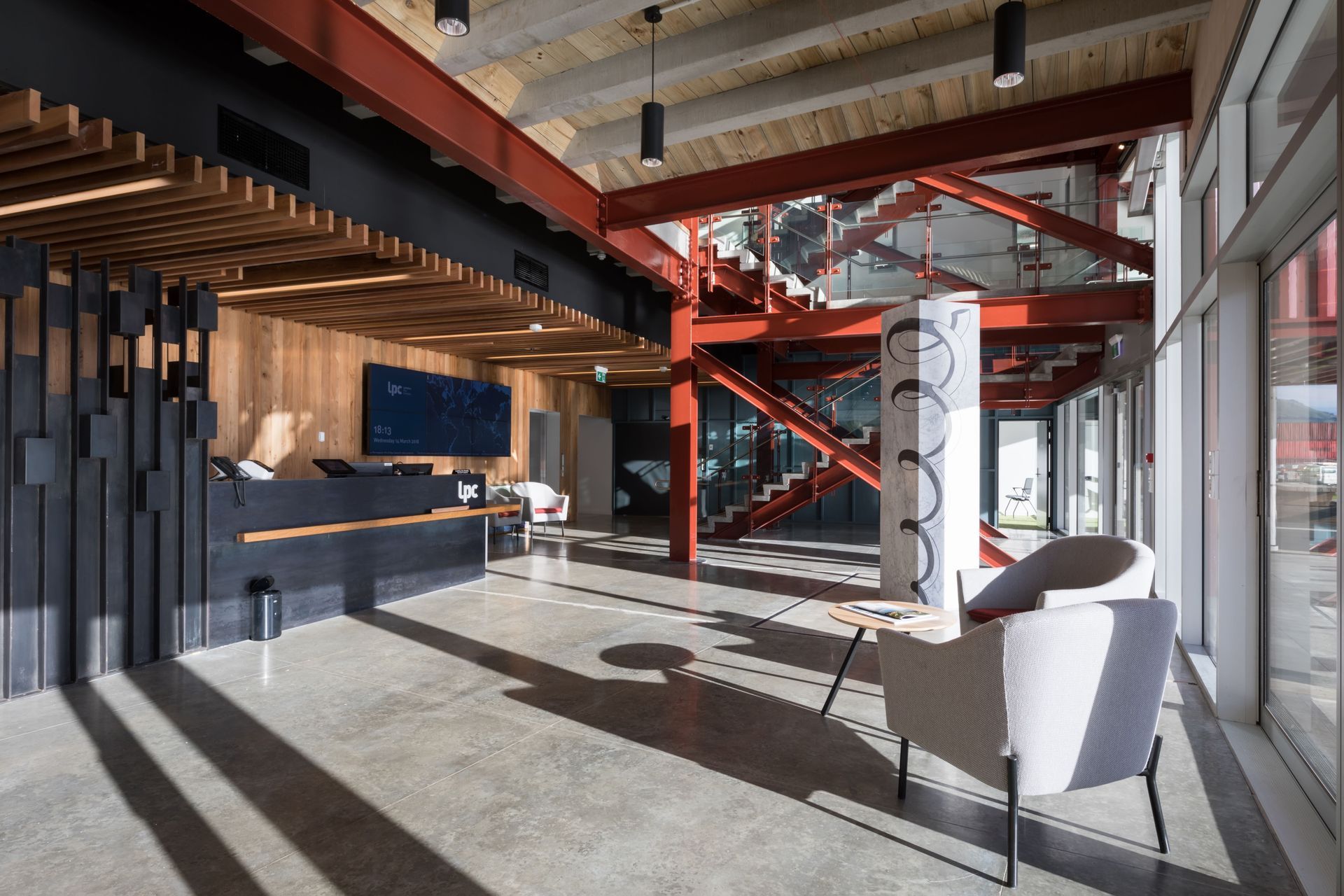 ArchiPro Project Summary - Lyttelton Port Company showcases the Megafloor Warehouse system, featuring a polished concrete surface achieved with resin diamonds for a rustic finish, highlighting the natural beauty of the material without exposing any stone.