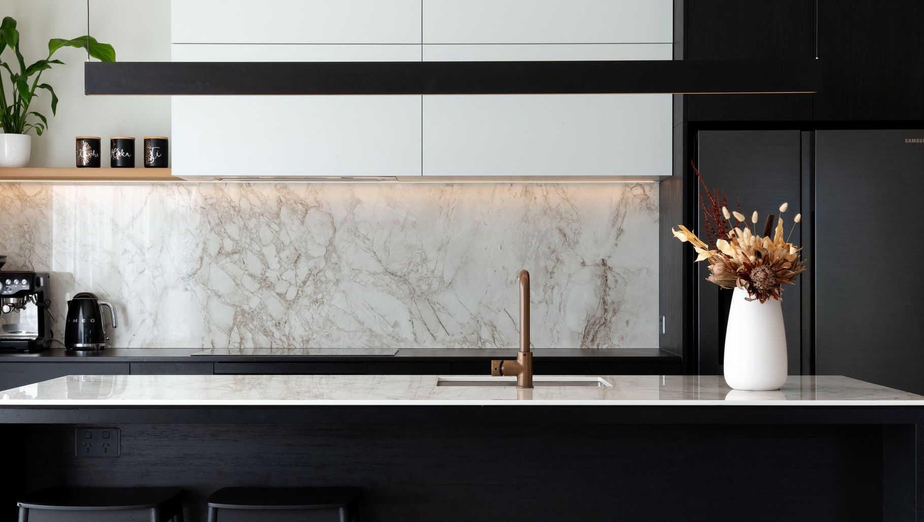 ArchiPro Project Summary - A stylish, contemporary home showcasing high-end design on a practical budget, featuring luxurious wool carpets, warm timber accents, and a stunning kitchen island, all while providing a comfortable space for its resident pooch, Peppa.