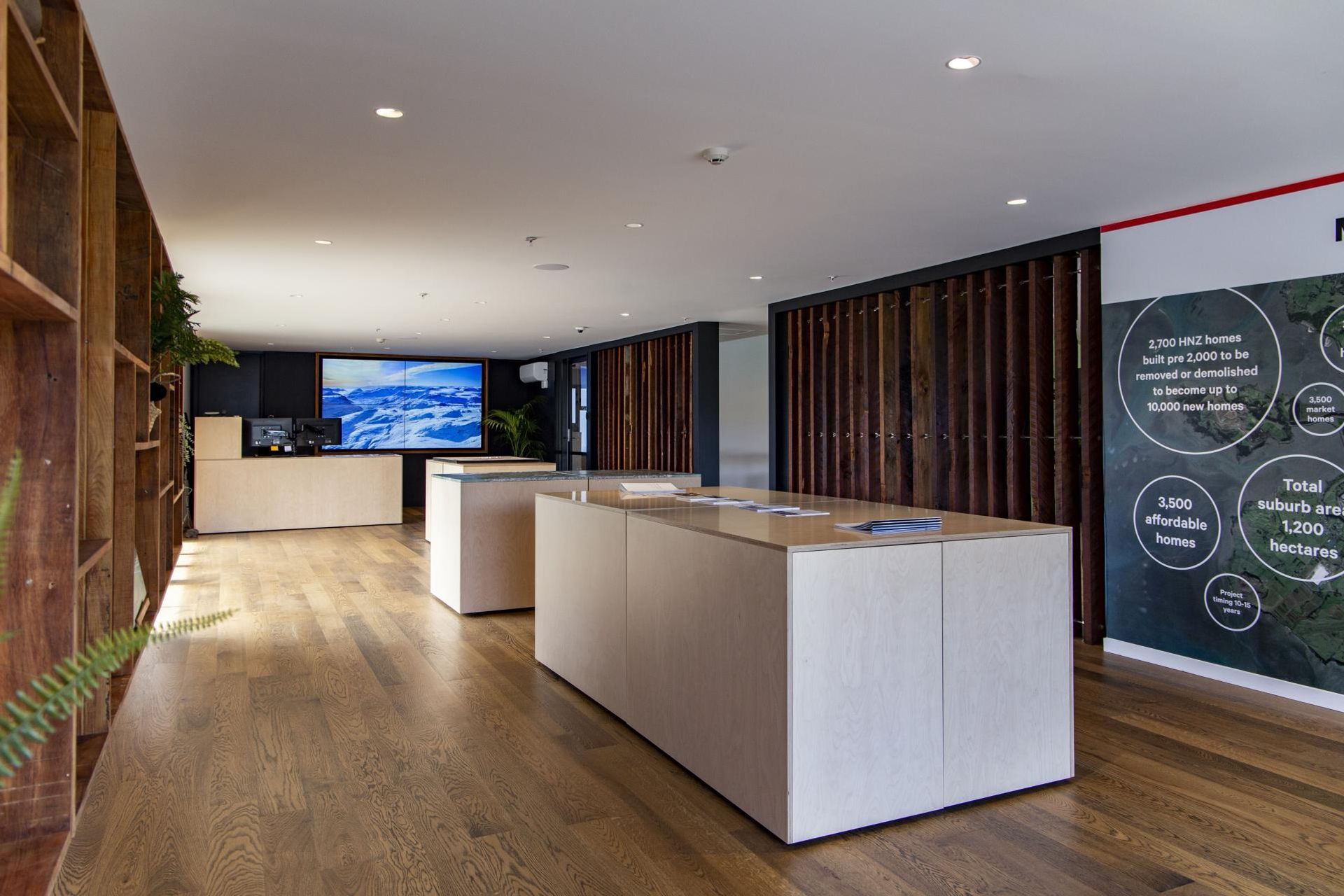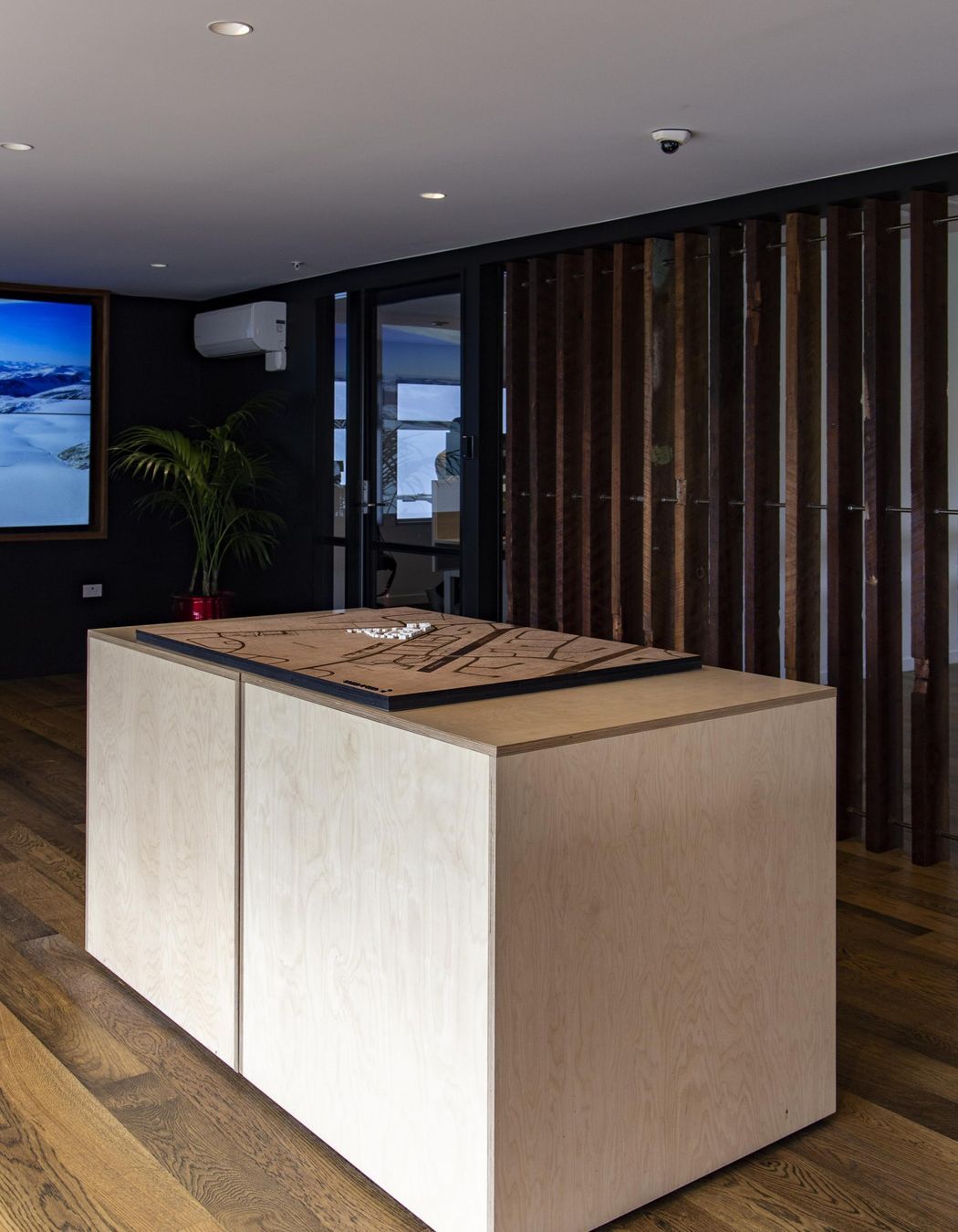 ArchiPro Project Summary - Refurbishment of an existing space into an information centre featuring cabinetry and recycled native timber screens, all crafted in our workshop.