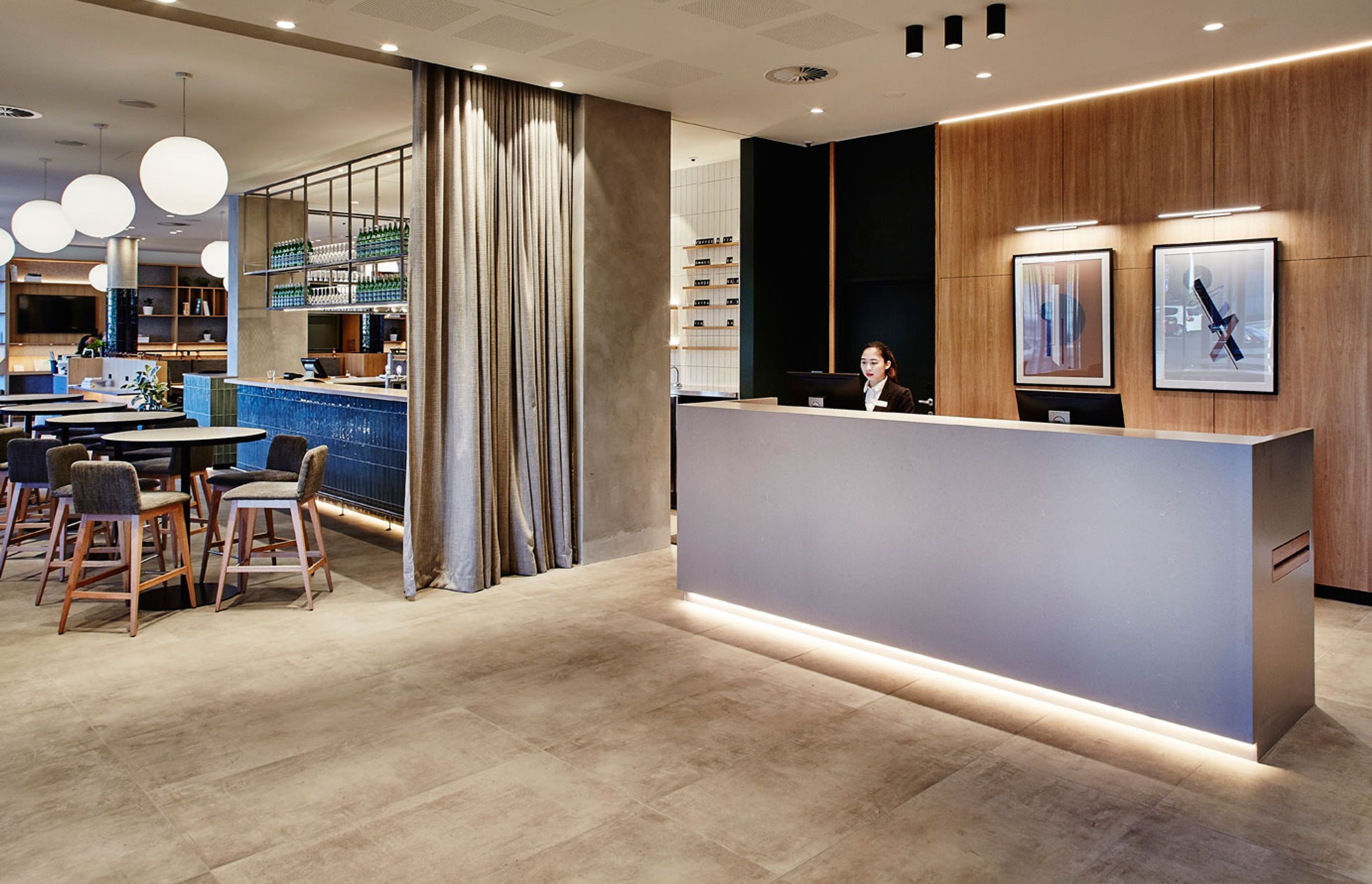 ArchiPro Project Summary - A contemporary hotel and on-site restaurant designed for frequent flyers, located in the Sydney Airport precinct, featuring the expertise of Akin Interiors, Martin & Ollmann, and Malaya Blonde, with photography by Taylors Construction.