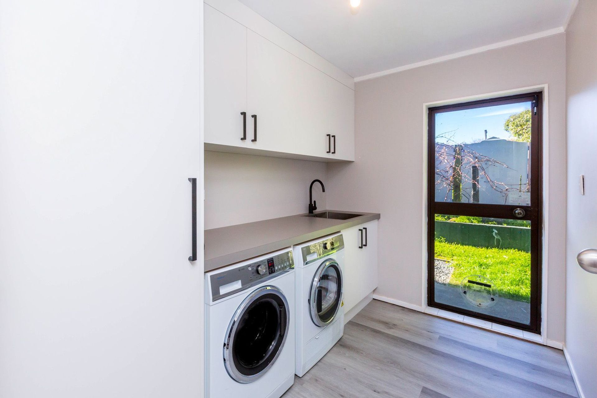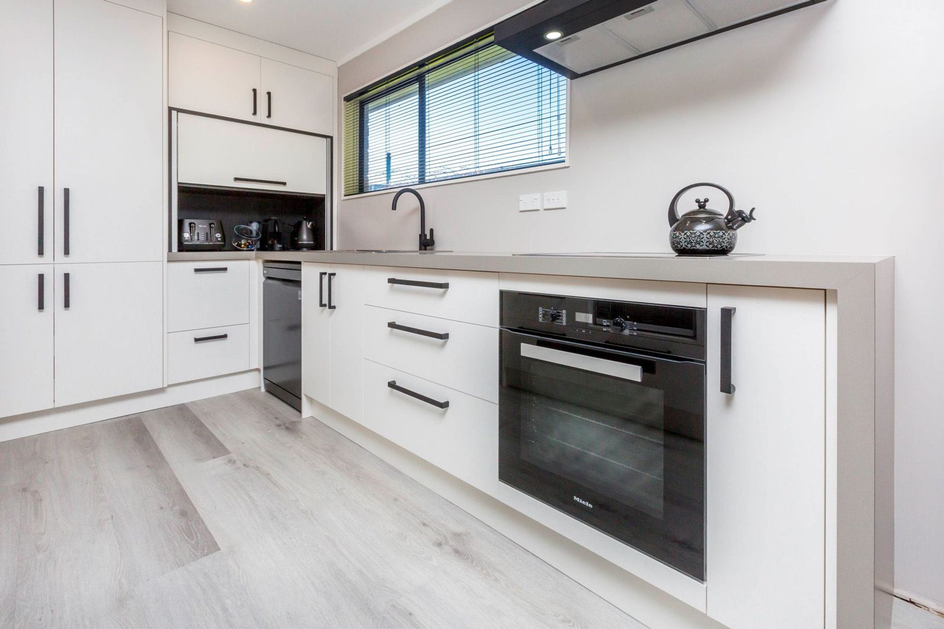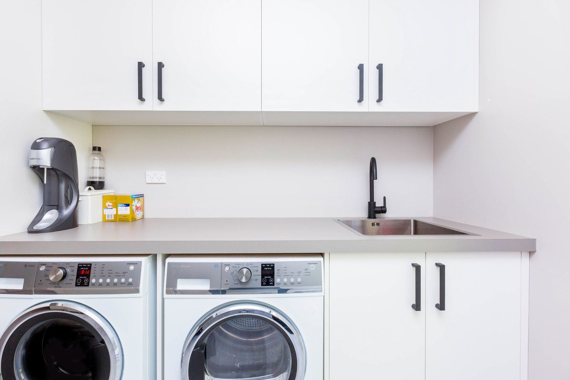 ArchiPro Project Summary - A stunning kitchen and laundry transformation featuring a sophisticated monochromatic black, white, and grey colour scheme, showcasing exceptional craftsmanship and innovative design by NZCabinetMaker.