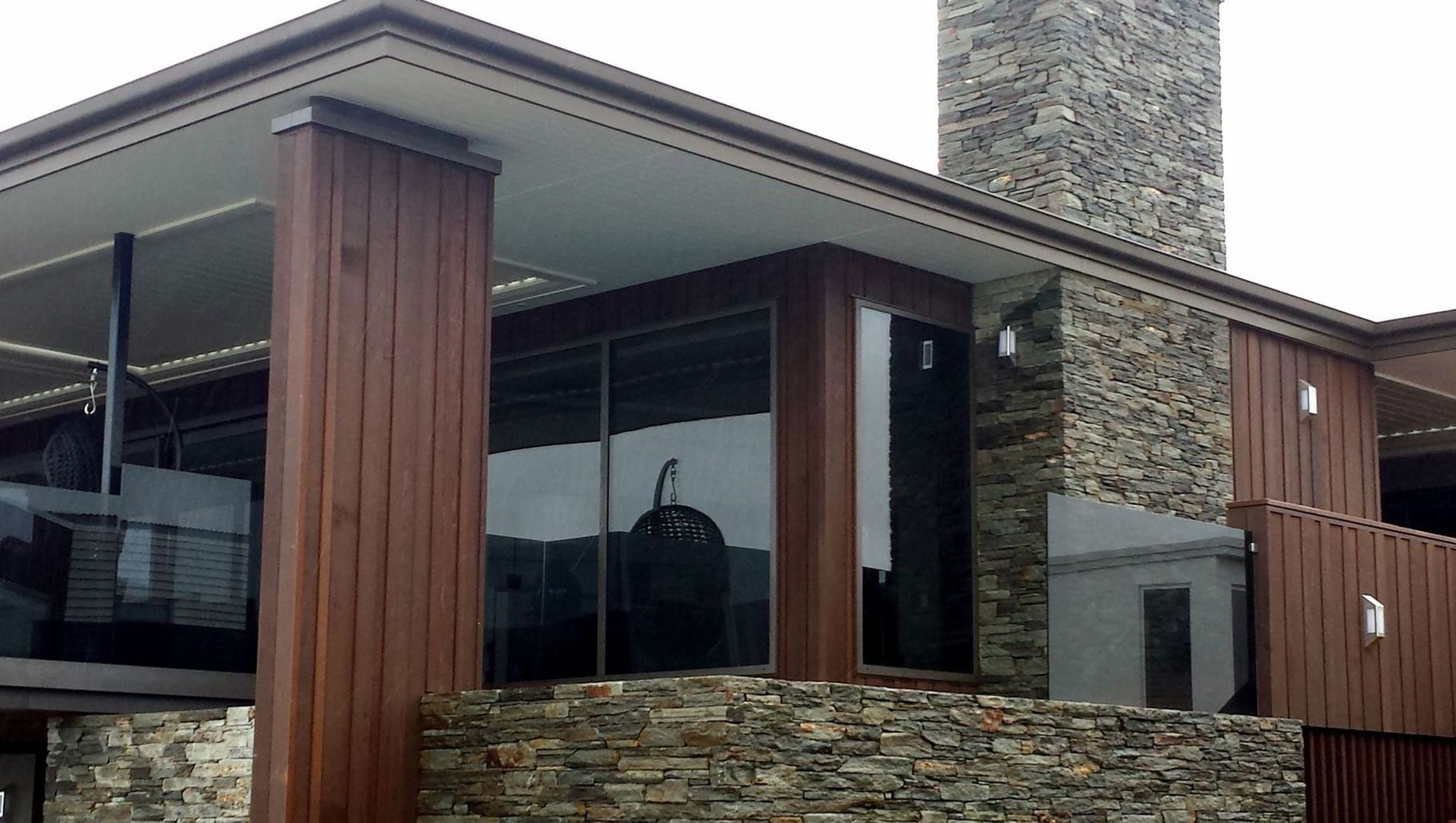 ArchiPro Project Summary - A stunning beachside property featuring Hyde Grey Schist, expertly paired with Western Red Cedar cladding, showcasing the versatility of New Zealand stone in a coastal setting.
