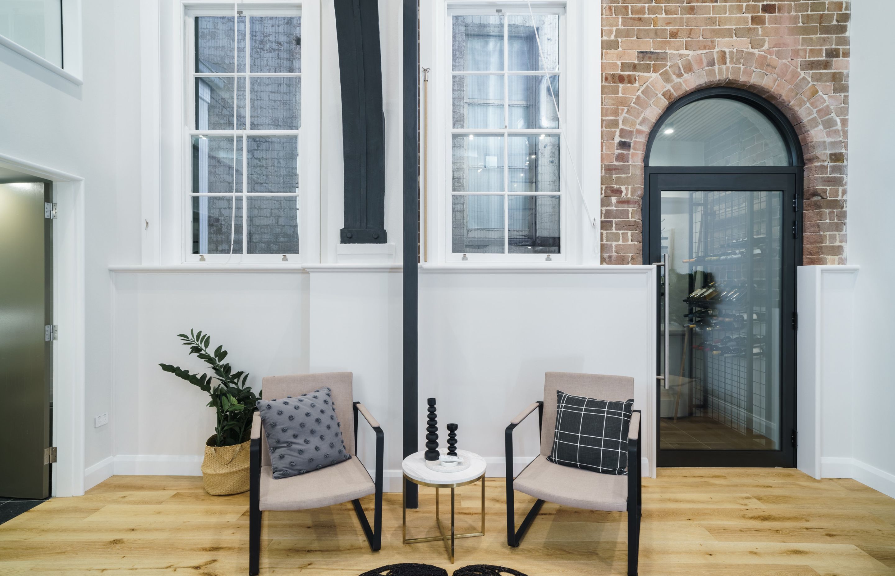 ArchiPro Project Summary - Meticulously renovated Masonic Hall in Balmain, showcasing traditional brickwork and heritage design, featuring a stunning façade and restored interiors with soaring ceilings and intricate timber detailing.