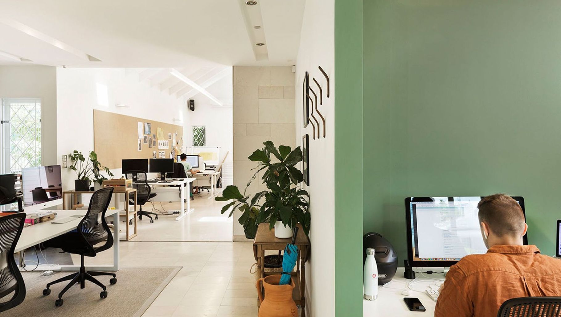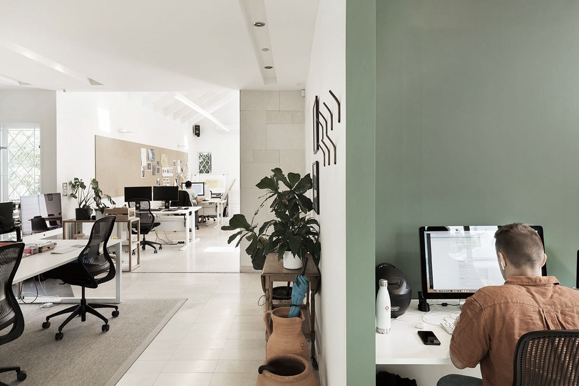 ArchiPro Project Summary - Transformation of an old tile studio into a vibrant shared workspace, highlighting its tiled history while fostering an open-plan environment that encourages natural light and collaborative team interactions.