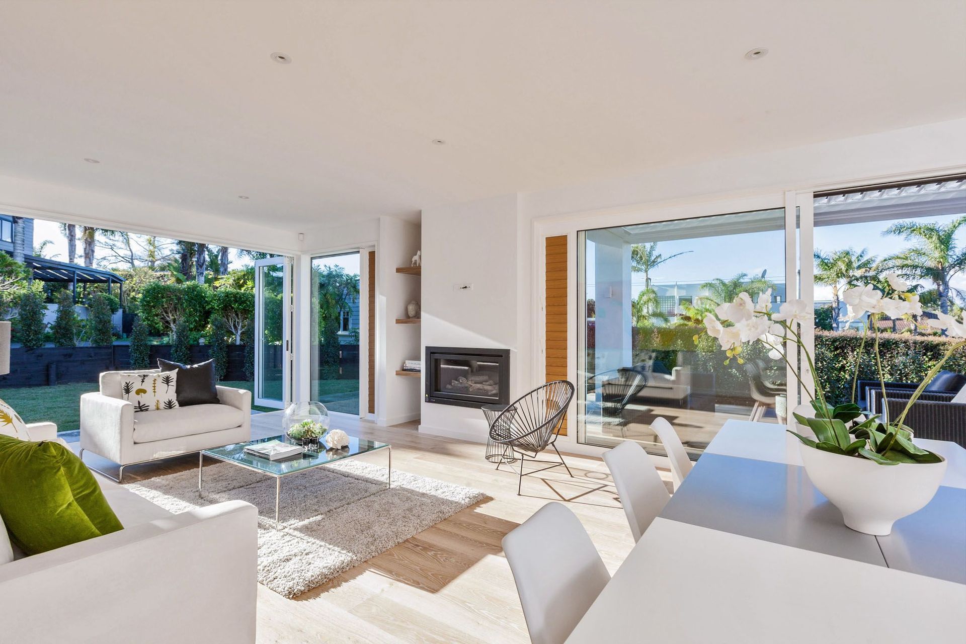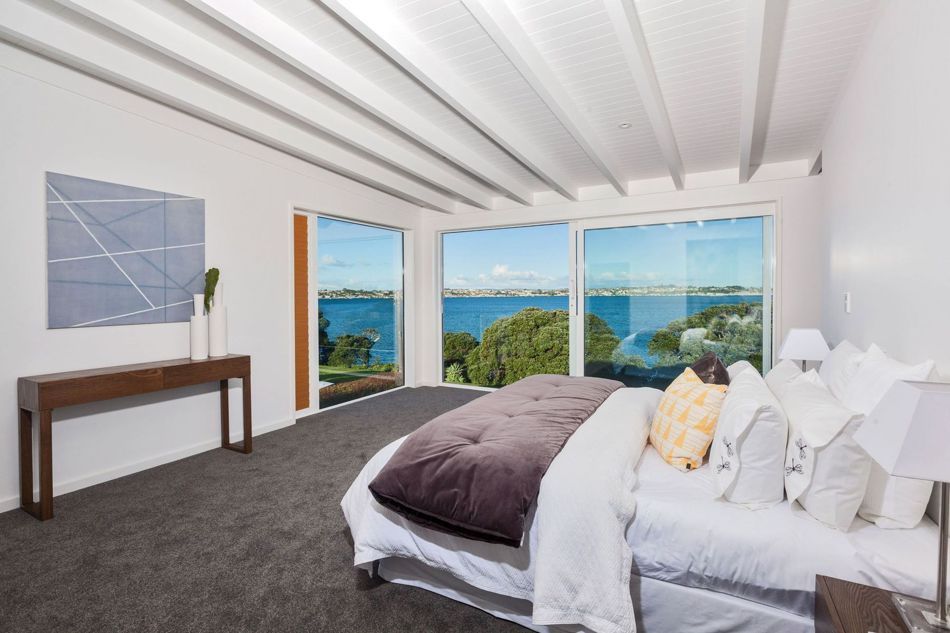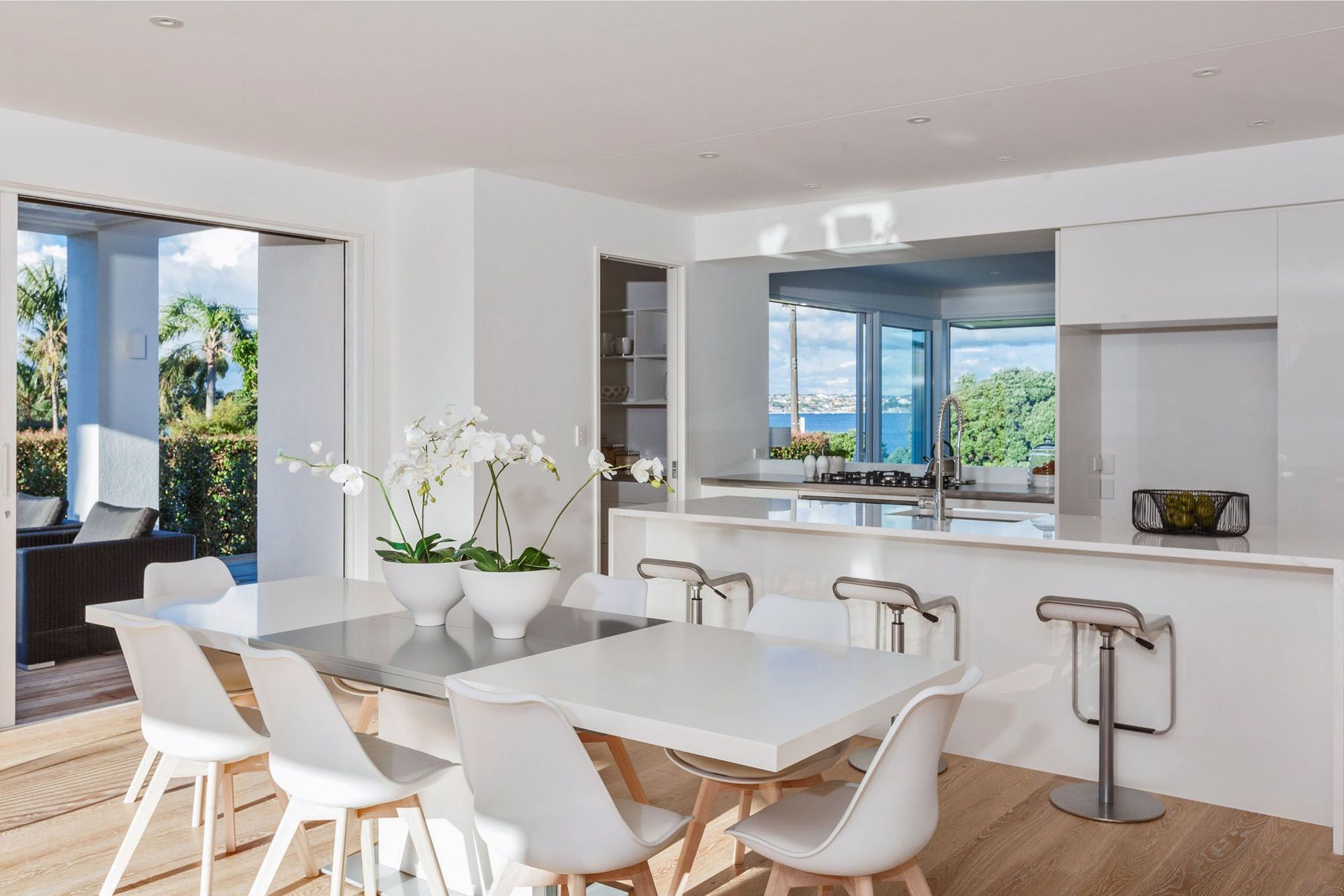 ArchiPro Project Summary - A modern luxury home in Glendowie featuring stunning sea views, open-plan living, and a blend of contemporary design elements, including monopitch roofing, natural materials, and spacious outdoor entertaining areas.