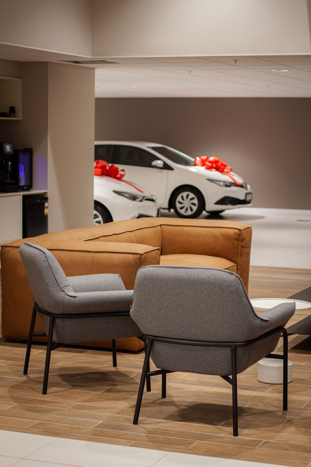 ArchiPro Project Summary - A sophisticated and functional furniture fit-out for Melbourne City Toyota, featuring a modern minimalist design that enhances the showroom and workspaces with luxurious furnishings and a calming color palette.