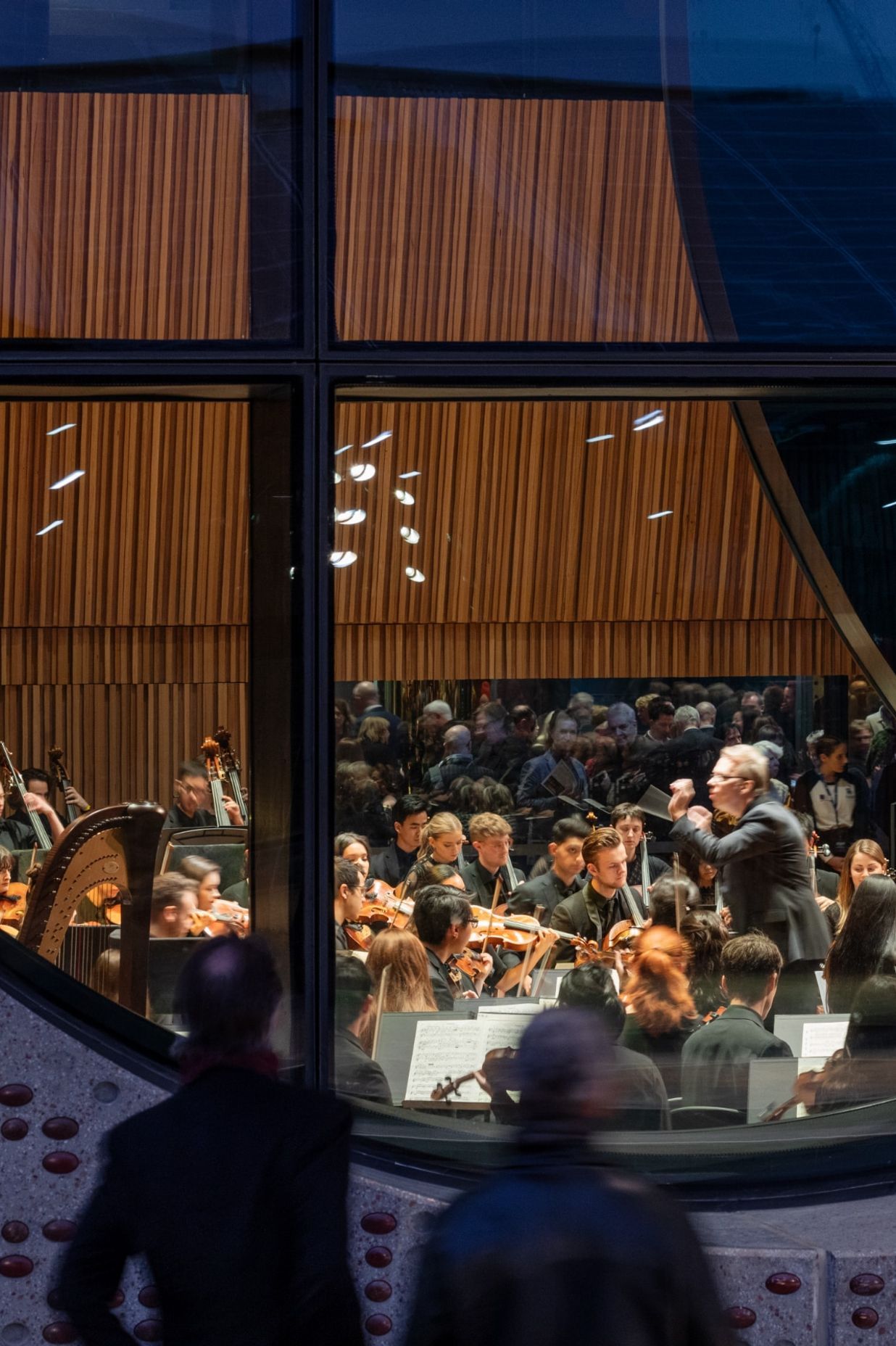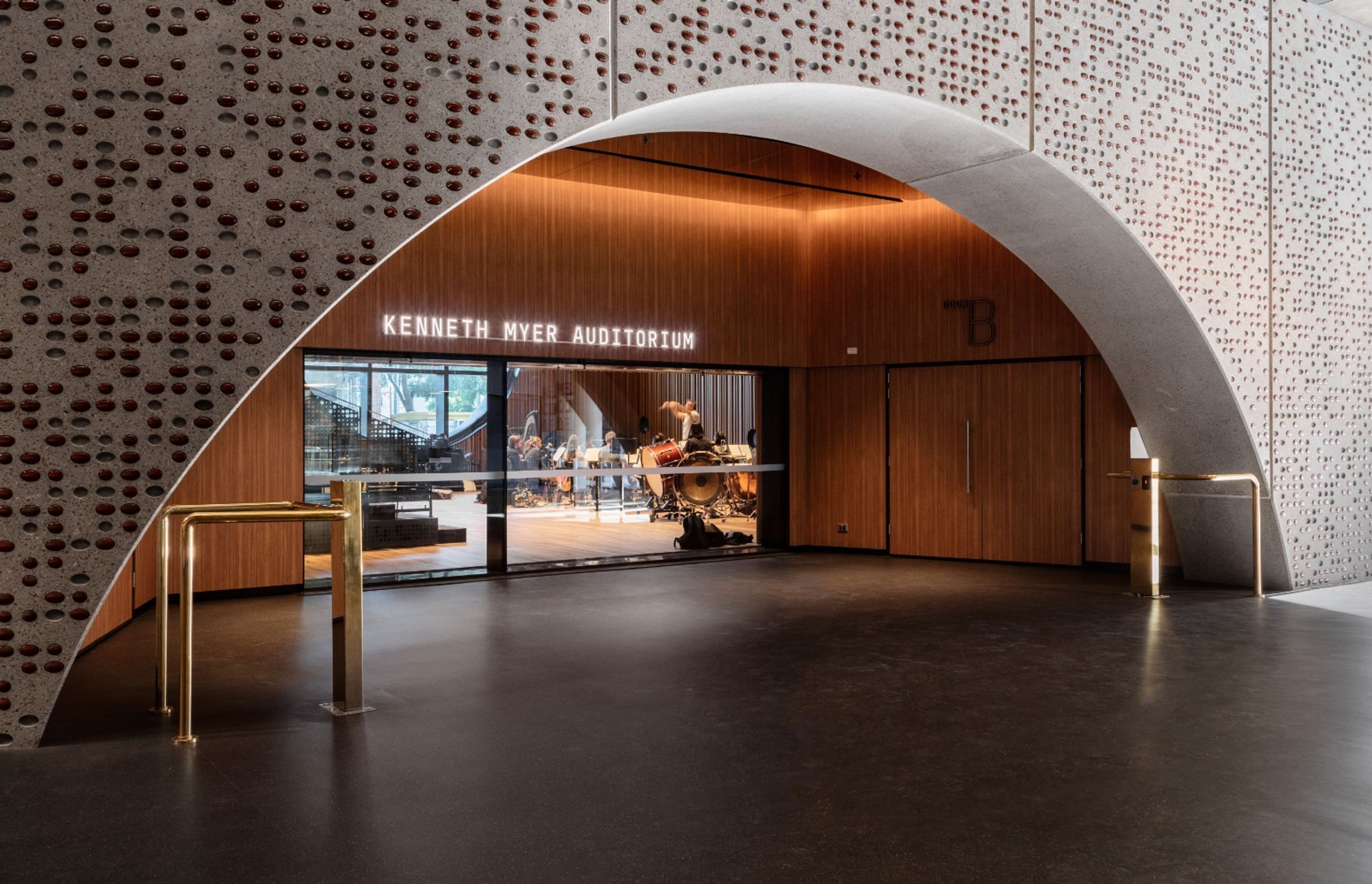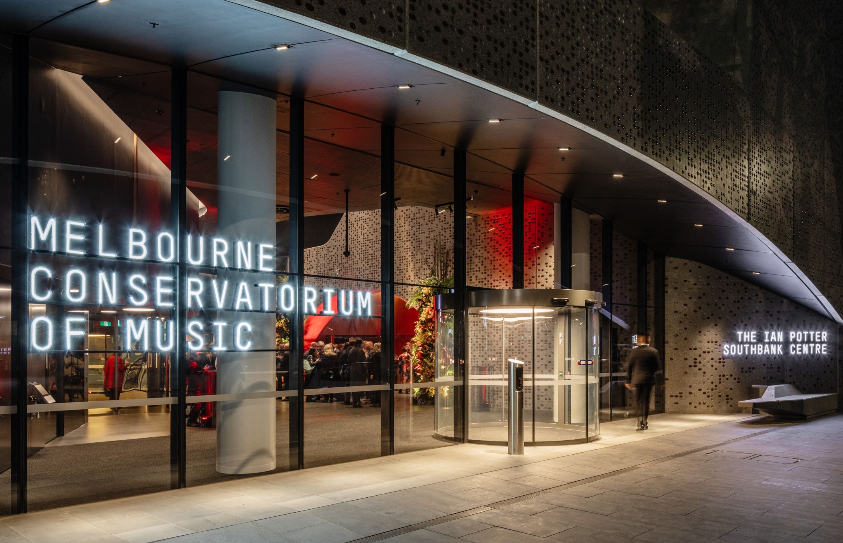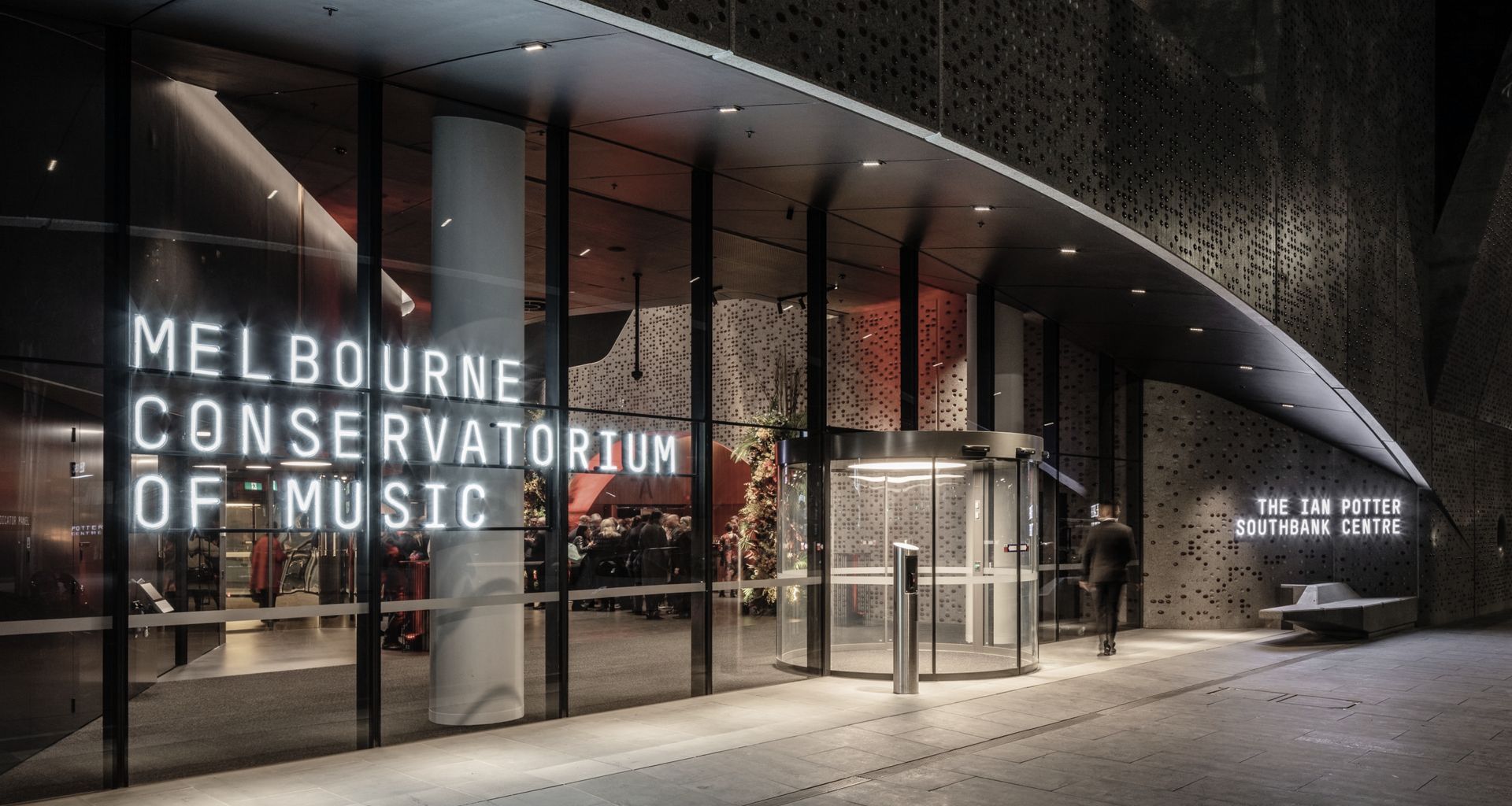 ArchiPro Project Summary - Elegant wayfinding solution for the Melbourne Conservatorium of Music, enhancing user experience and showcasing its dual role as a premier educational facility and public performance venue within the Ian Potter Centre.