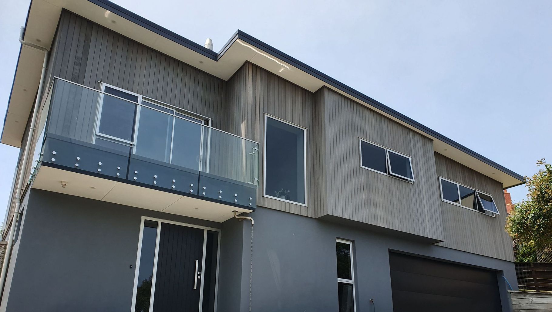 ArchiPro Project Summary - Mellons Bay features modern architecture with elegant siding, expansive balconies, and a focus on sustainability.