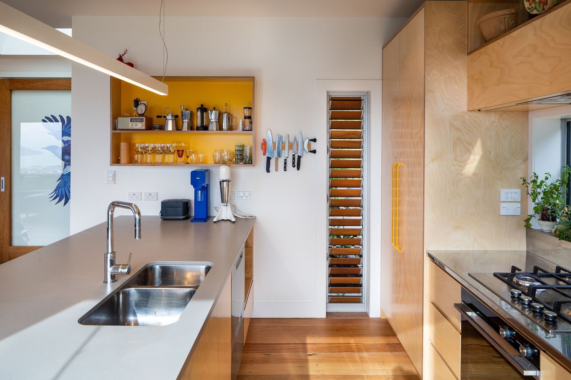 ArchiPro Project Summary - Thoughtfully redesigned 1930s home overlooking Lyall Bay, transformed into a larger, energy-efficient space for a family of four by architect Judi Keith-Brown.