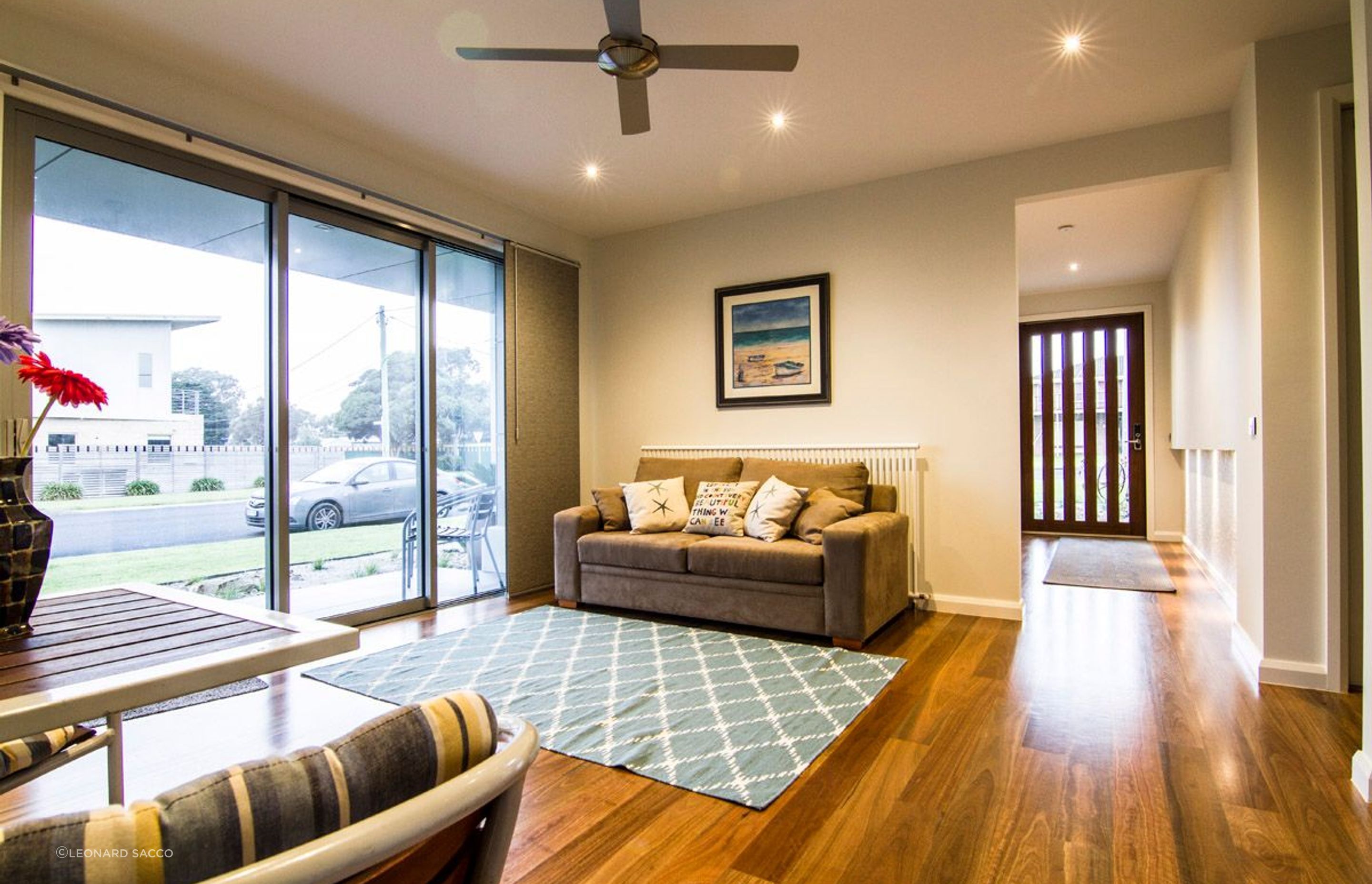 ArchiPro Project Summary - Contemporary luxury residence on Victoria's Bellarine Peninsula, completed in 2013 for clients Tony and Sylvie, featuring a harmonious blend of natural and fabricated materials, optimizing expansive views with high-end finishes throughout.