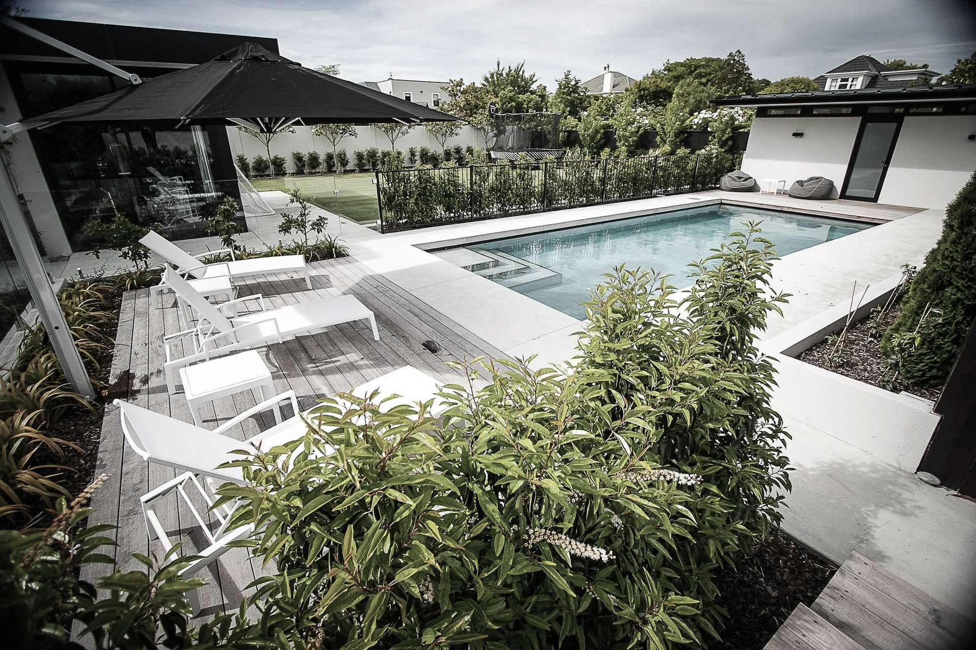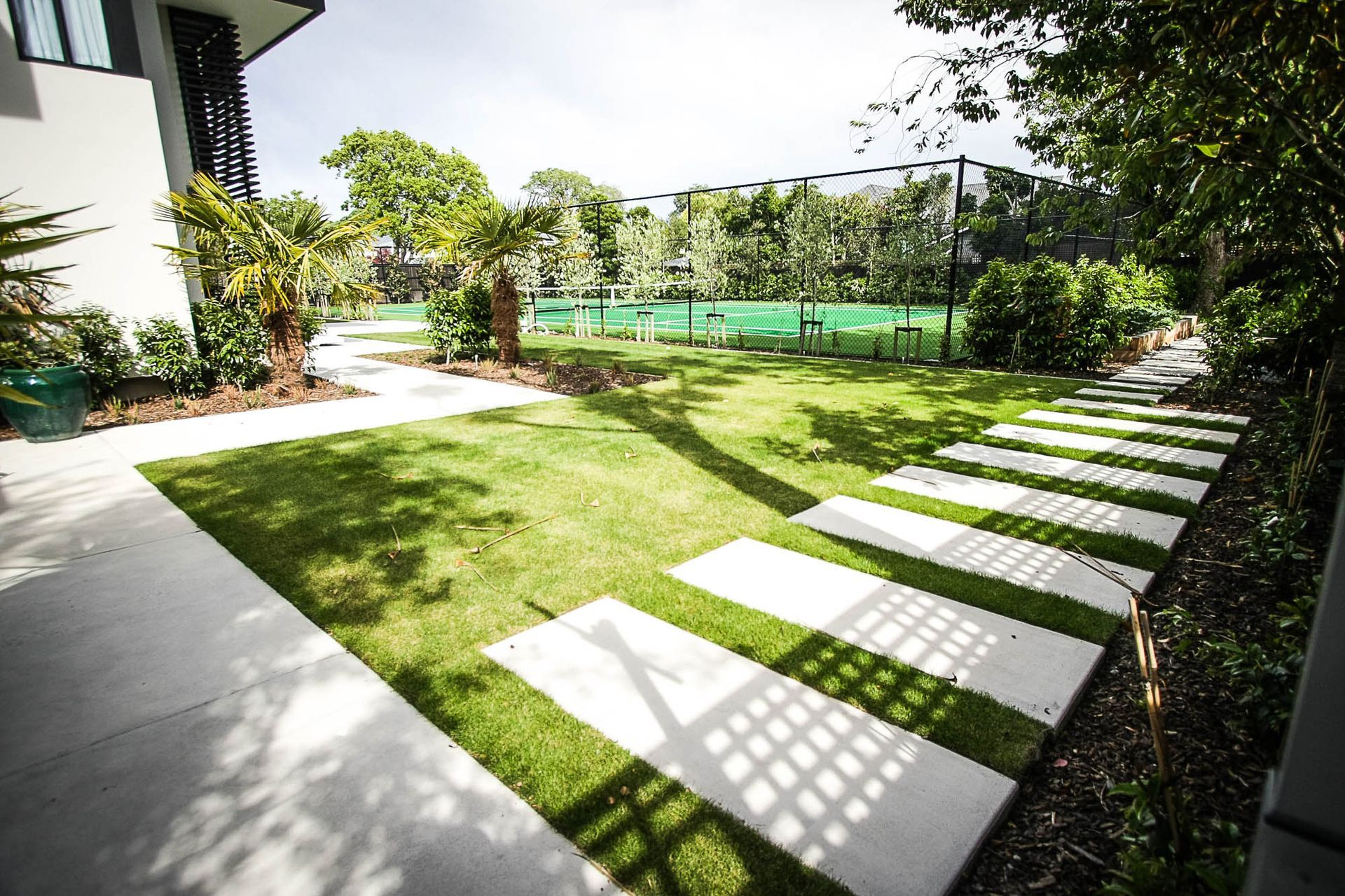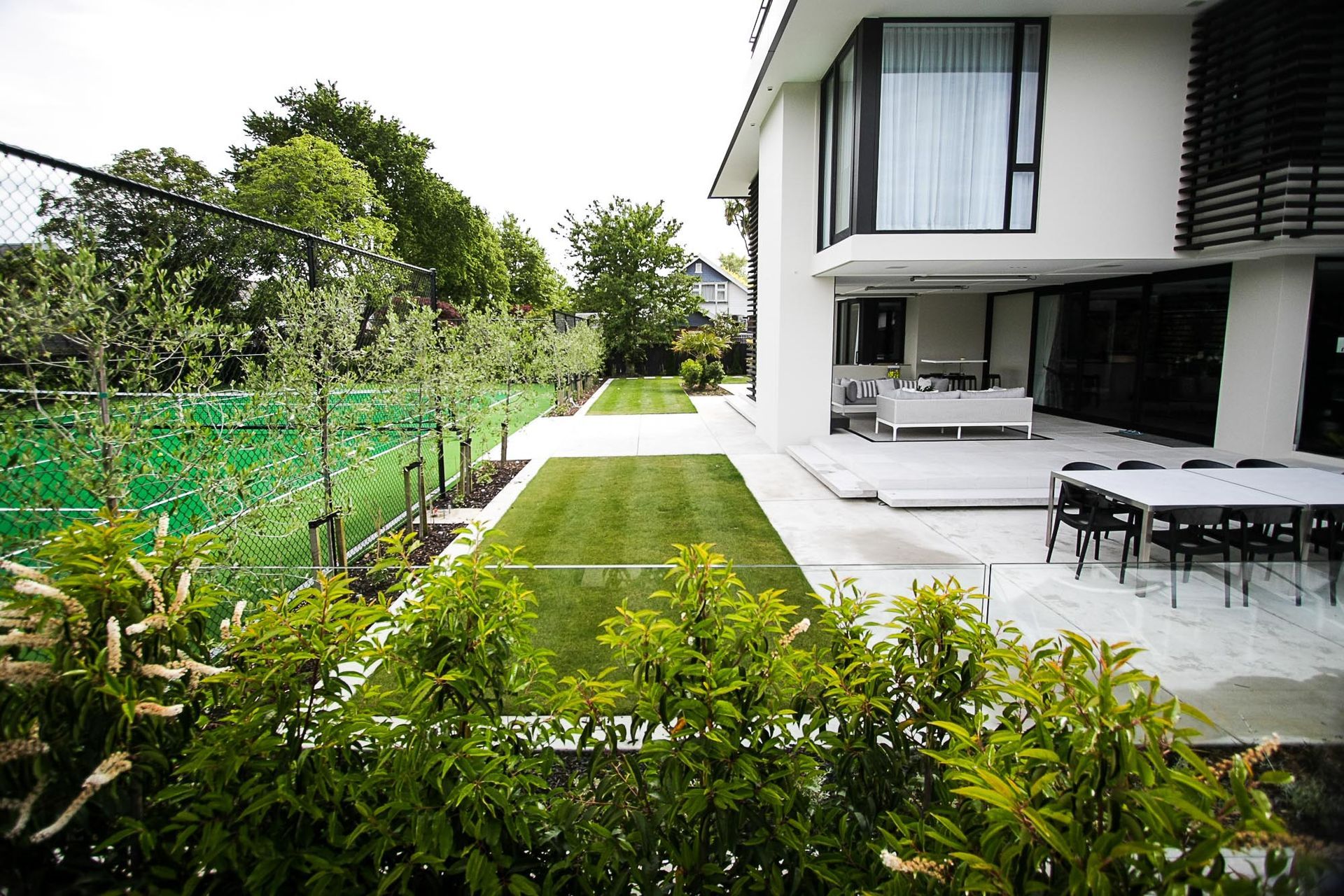 ArchiPro Project Summary - A modern home featuring a sheltered courtyard, tennis court, swimming pool, and vibrant outdoor spaces designed for family gatherings and entertaining.