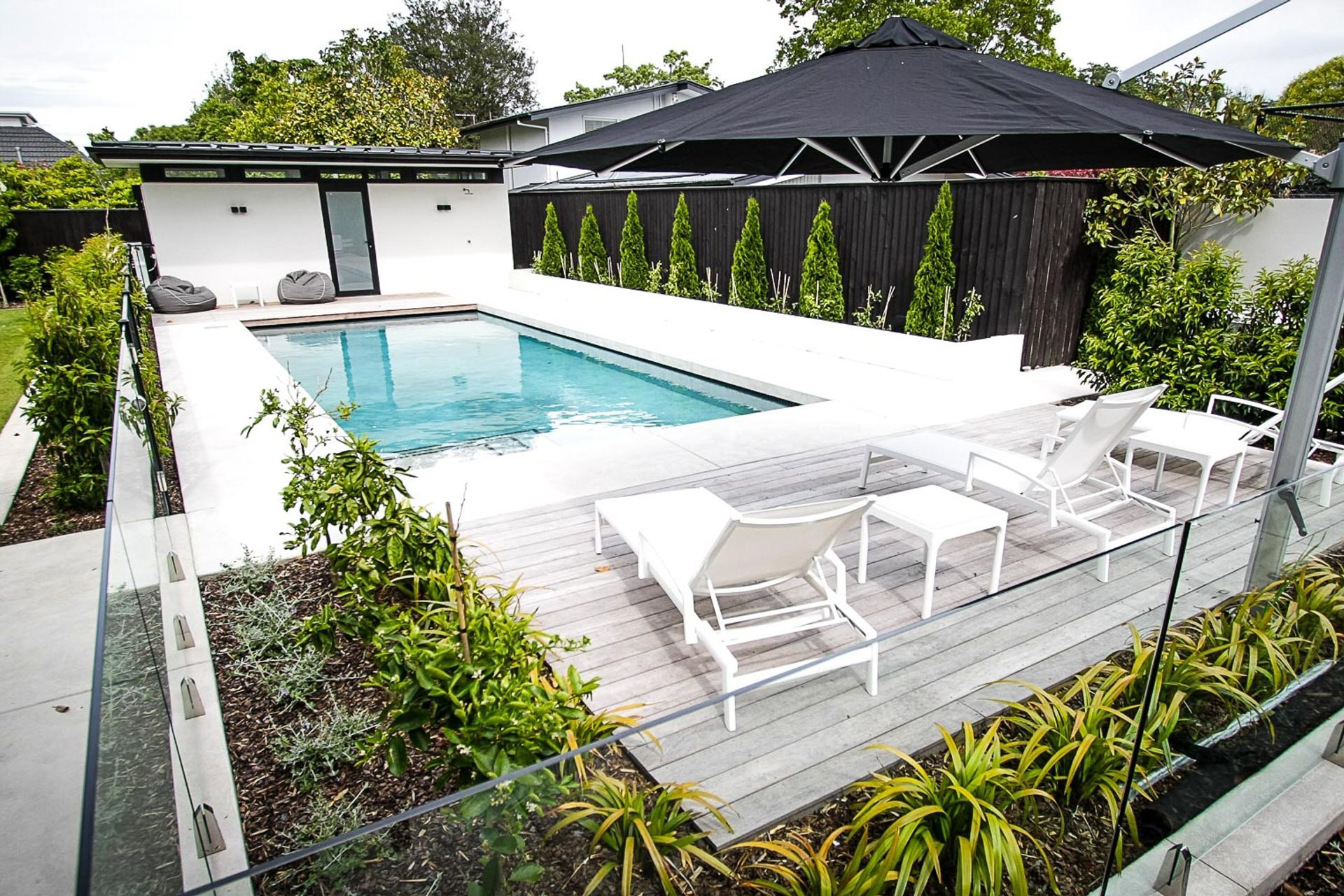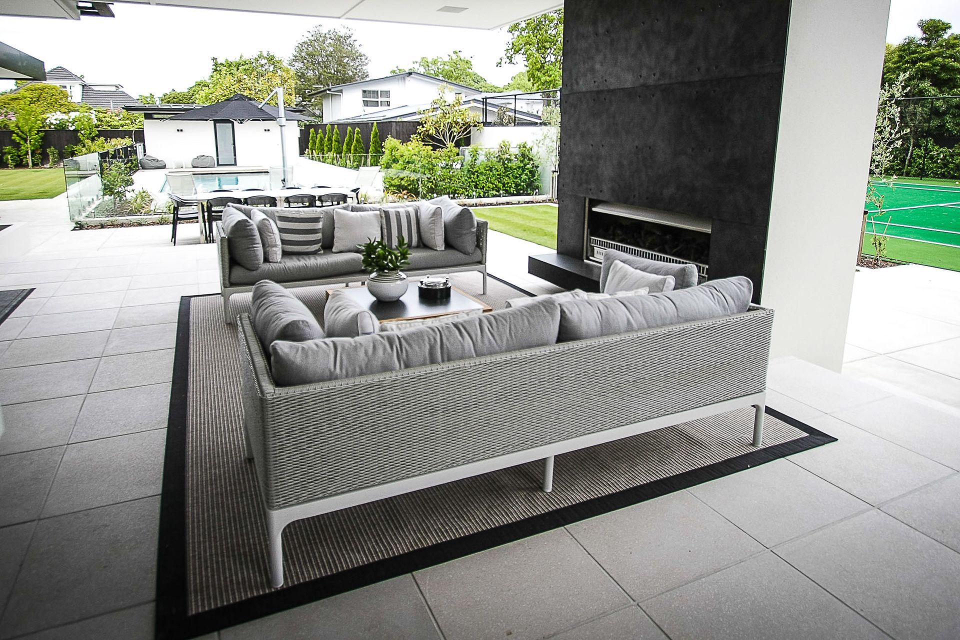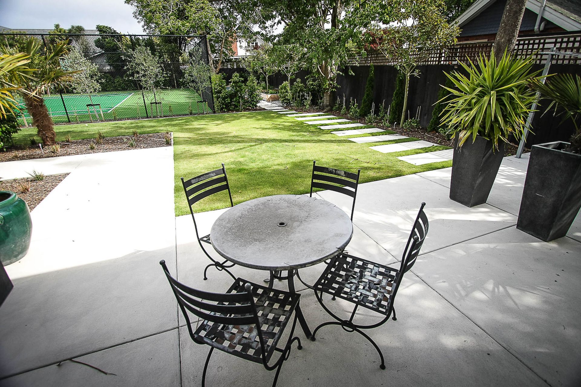 ArchiPro Project Summary - A modern home featuring a sheltered courtyard, tennis court, swimming pool, and vibrant outdoor spaces designed for family gatherings and entertaining.