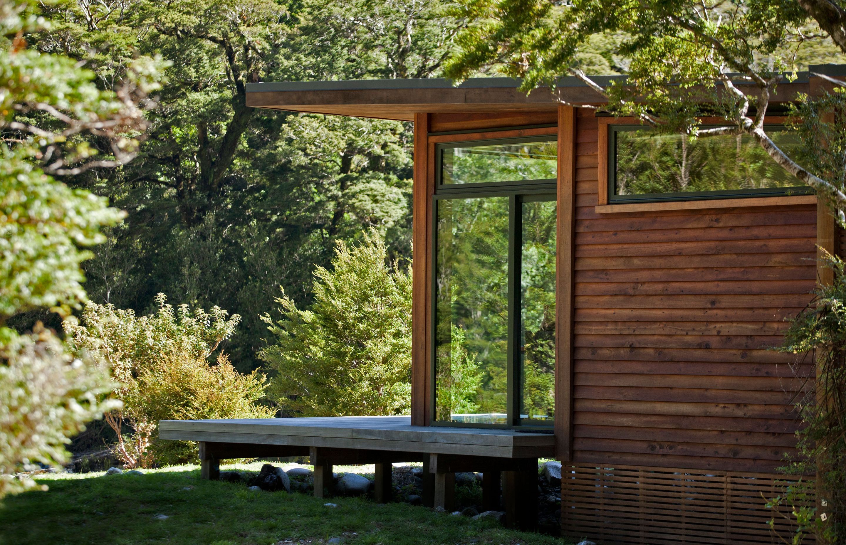 ArchiPro Project Summary - Milford Sound Lodge features 14 luxury studio chalets designed with sustainability in mind, utilizing locally sourced macrocarpa wood and optimized architectural details to enhance comfort and breathtaking views in a World Heritage location.