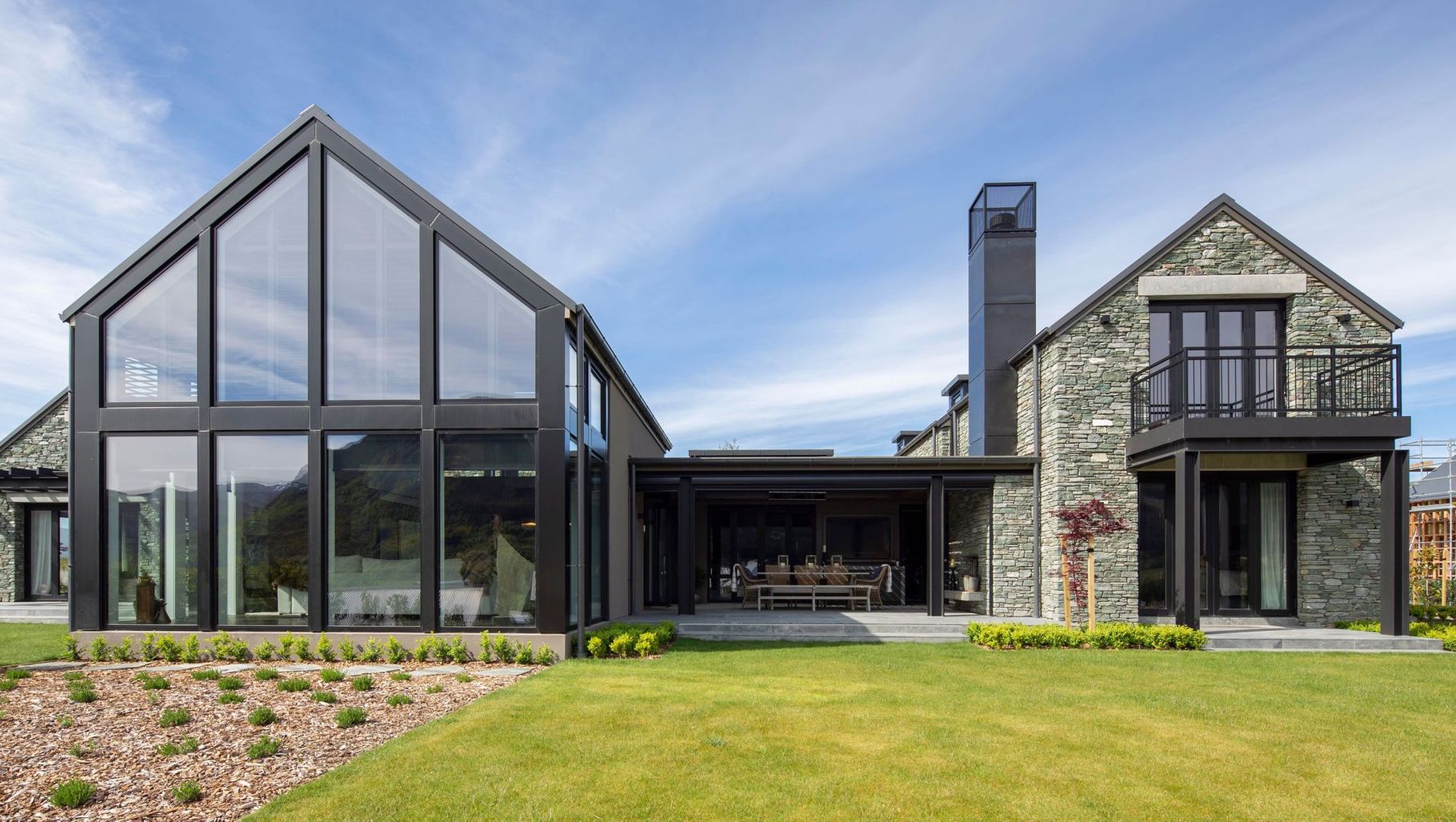 ArchiPro Project Summary - A modern and elegant Millbrook House featuring a harmonious blend of stone, glass, and steel, complemented by warm tones and black accents that contrast beautifully with soft wood finishes.