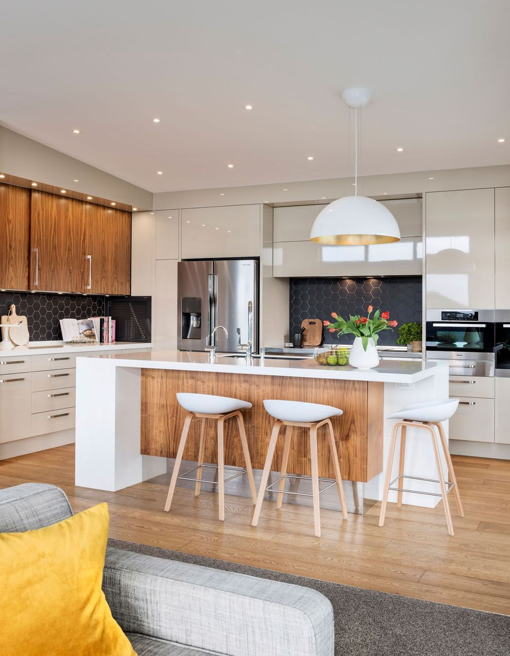 ArchiPro Project Summary - The Millwater Kitchen combines modern design with functionality, featuring elegant cabinetry, high-end appliances, and stunning countertops.