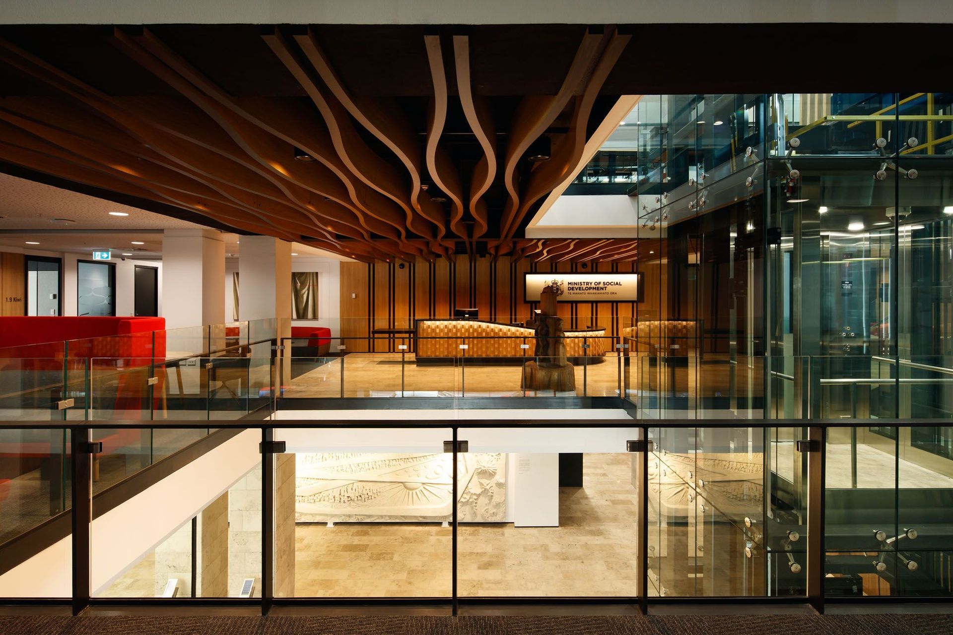 ArchiPro Project Summary - Contemporary head office for the Ministry of Social Development, completed in 2016, featuring a flexible open plan environment, inspired design elements reflecting New Zealand's natural heritage, and a focus on collaborative workspaces.