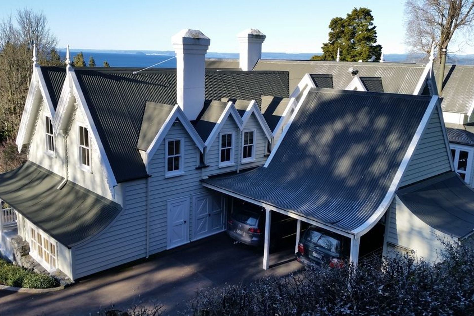 ArchiPro Project Summary - A stunning renovation of a 1875 homestead, designed to triple its size while preserving original architectural details, set in picturesque gardens with breathtaking views of Lake Taupo.